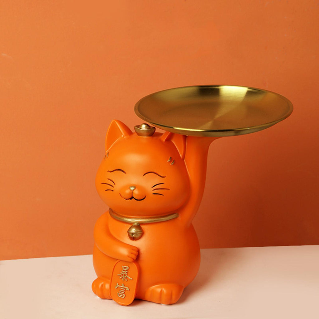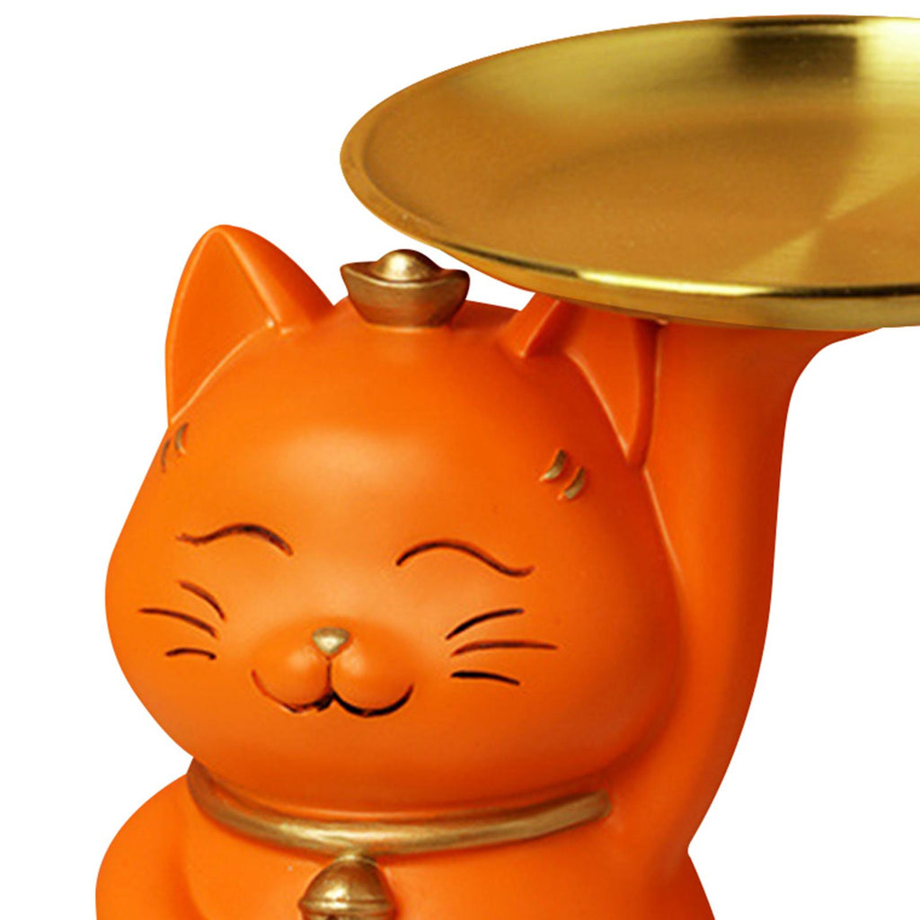Maxbell Animal Storage Box Sculpture Serving Tray Ornament Resin Cat Statue Figurine Orange