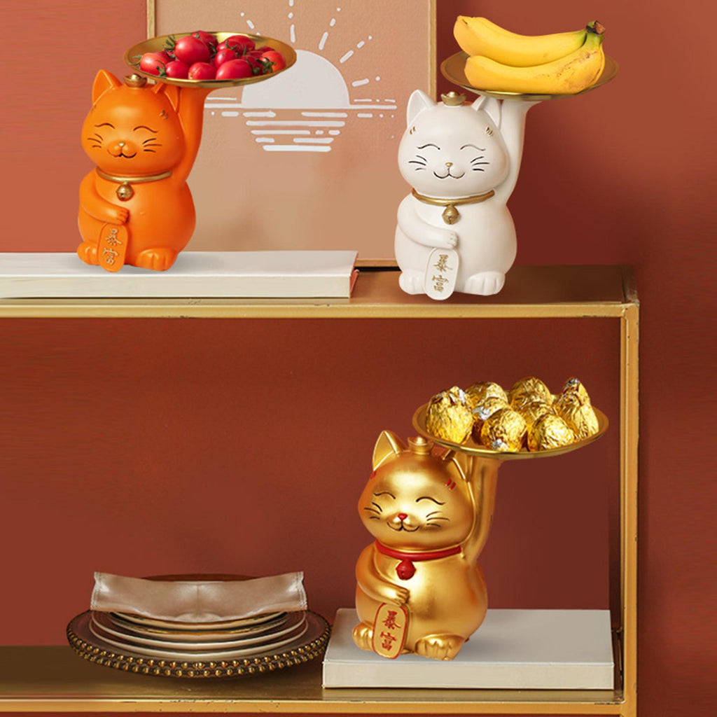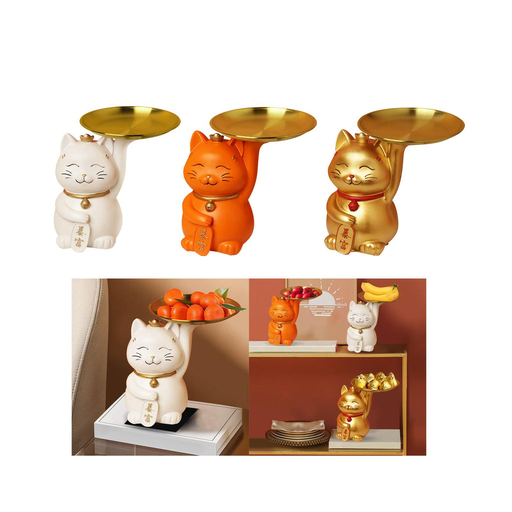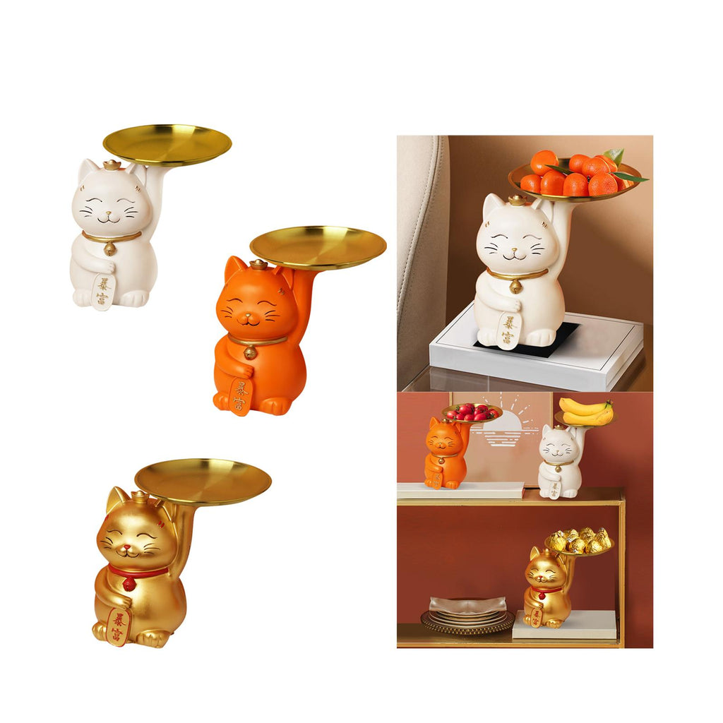 【Cute Decorative】: A lovely cat resin crafts ornament, This modern accessory tray decorative animal statue features a delightfully exquisite design, a great addition to any household decor.