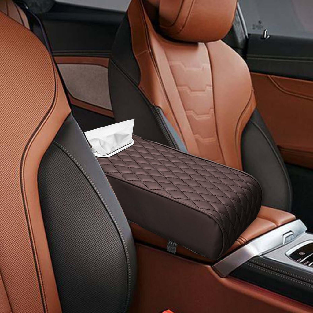 Maxbell Armrest Box Mats Multifunctional with Storage Pocket Universal Arm Rest Pad mocha brown