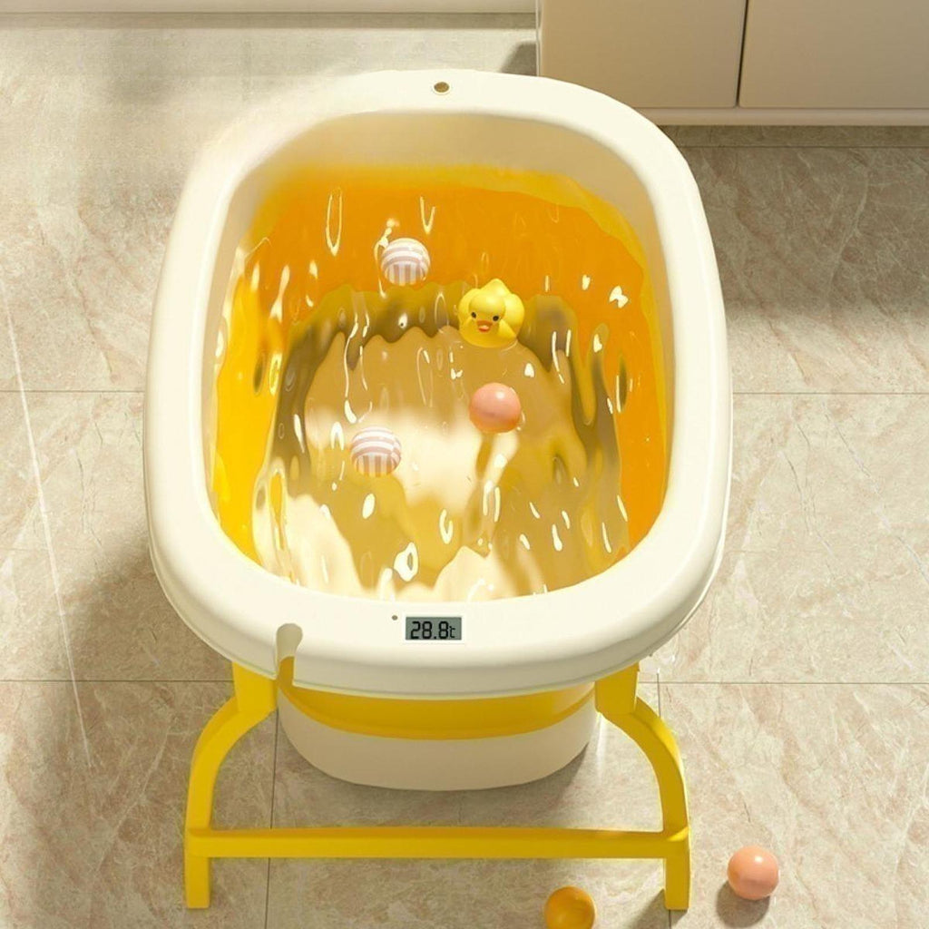 【Spacious Dimensions】: With dimensions of 90cm in length, 47cm in width, and 43cm in height, this large foldable baby bathtub offers ample space for your little to enjoy a full body bath comfortably at home
