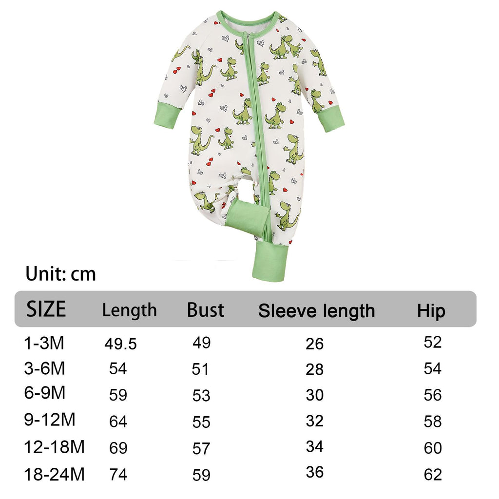 【Fashion Jumpsuit】Cartoon dinosaur printed baby jumpsuit outfits clothes featuring long zip for easy diaper changes and easy taking on and off, very practical design for your little baby.