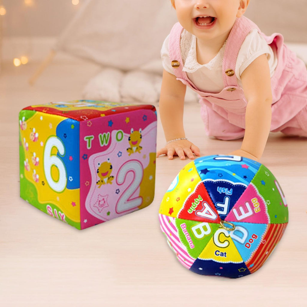 【Size】: The diameter of the baby hand ball is 11.5cm/4.53inch and the side length of the dice is 10cm/3.94inch. It is small and light, and the size is suitable for babies to hold.