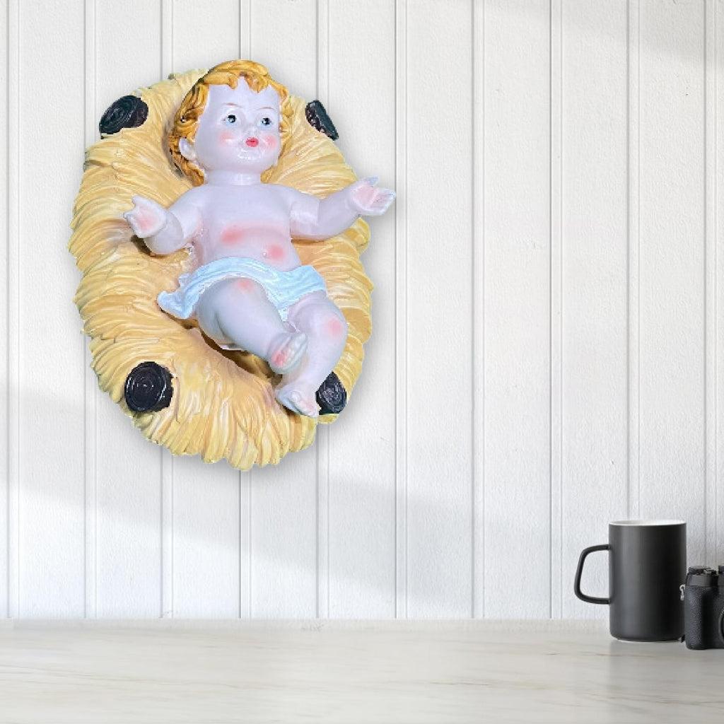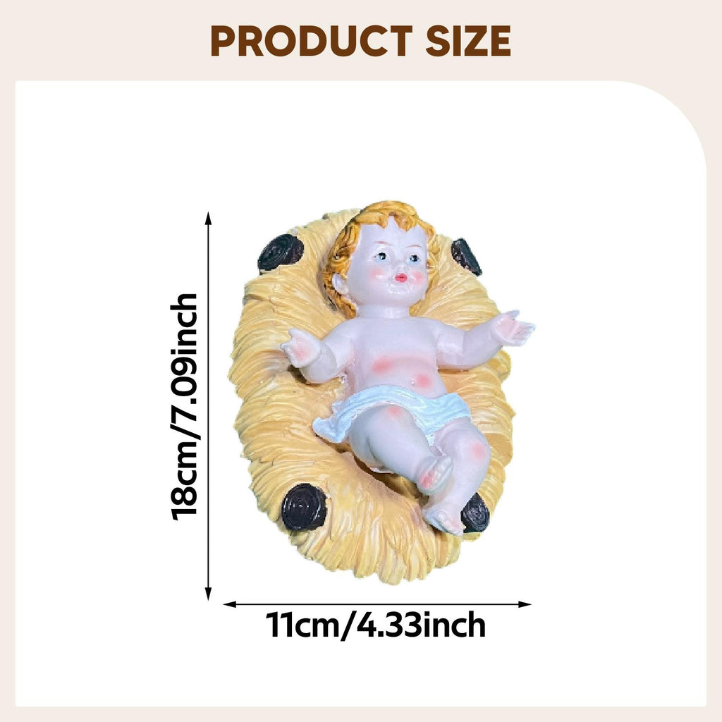 - 【Resin Craftsmanship】: Crafted from resin material. The Baby Jesus statue boasts lifelike details, natural colors, and a realistic texture, showcasing a high level of artistry that will be a cherished part of your decorations for years to come