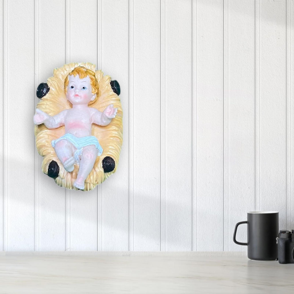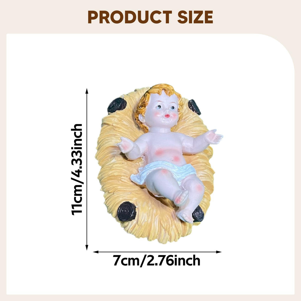 - 【Resin Craftsmanship】: Crafted from resin material. The Baby Jesus statue boasts lifelike details, natural colors, and a realistic texture, showcasing a high level of artistry that will be a cherished part of your decorations for years to come