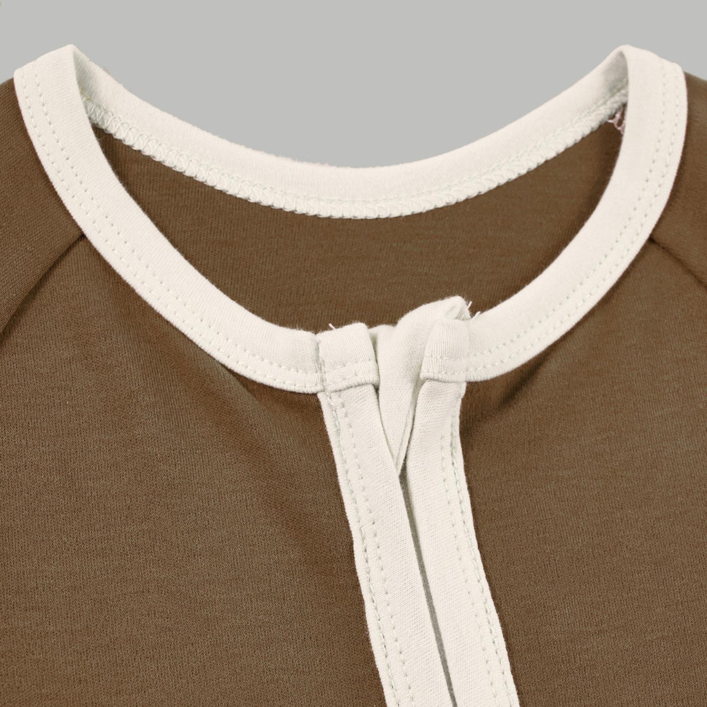 【Design】: This Long Sleeve Romper Outfit features Contrast color simple design. Can be worn by both male and female babies.