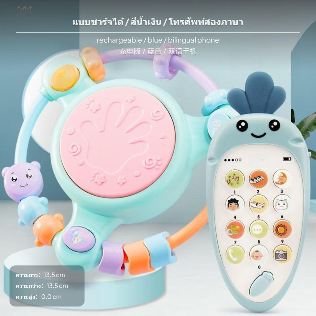 【Multi-Sensory Development】Combines baby drum, musical toy, and early learning features with story, song, and drum modes to stimulate auditory, tactile, and cognitive growth.【Safe & Durable Materials】Made from ABS and electronic components, featuring a cute cartoon design and soft pastel colors, suitable for infants and toddlers ages 0-3.【Interactive Rattle & Beads】Surrounded by colorful beads and rattle elements to enhance hand-eye coordination, grip strength, and fine motor skills.【Gentle Lights & Adjustable Volume】Soft glowing drum lights and adjustable volume protect your child's vision and hearing, ideal for nighttime comfort and daily play.【Multiple Power Options】Available in battery and rechargeable versions; select sets include bonus Manhattan ball or bilingual phone for enriched early education, making it a thoughtful gift for growing babies.Specification: