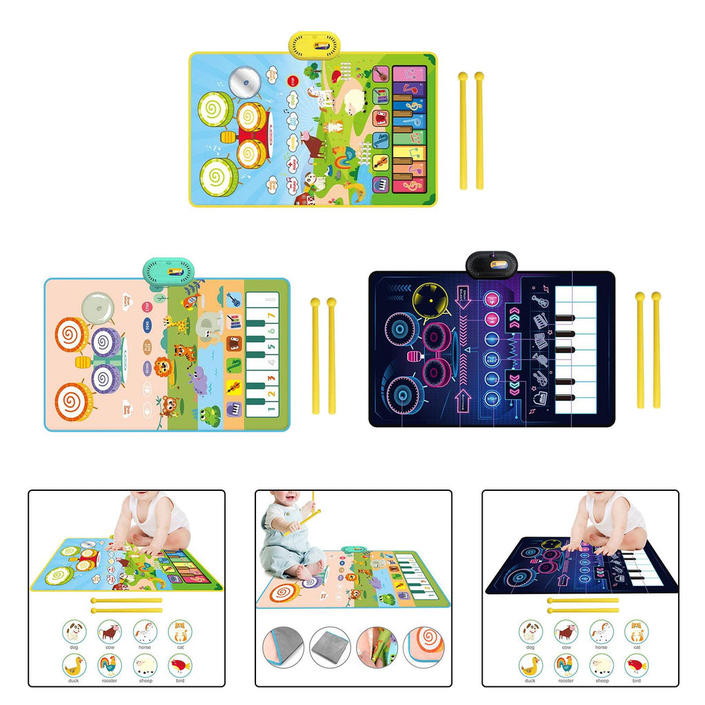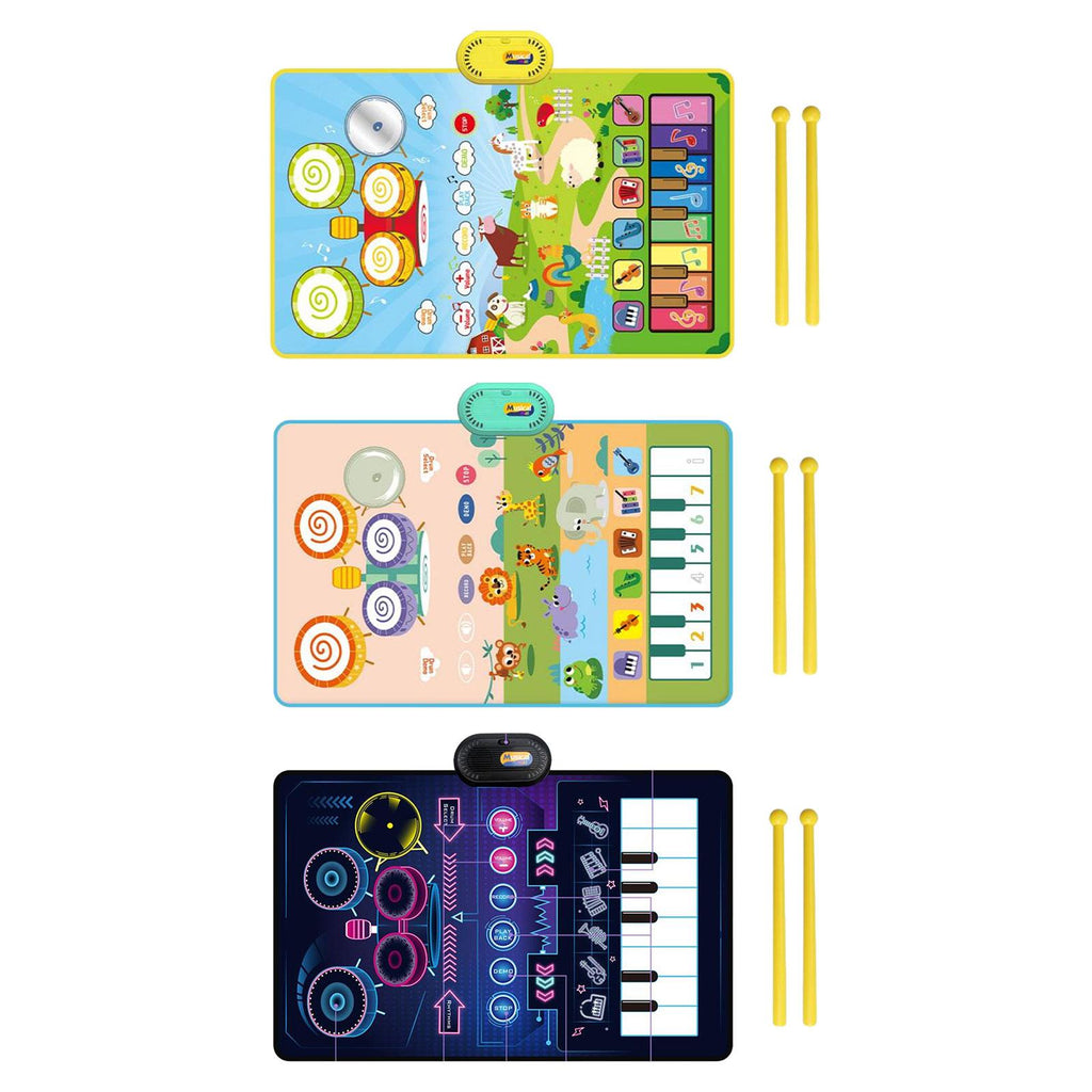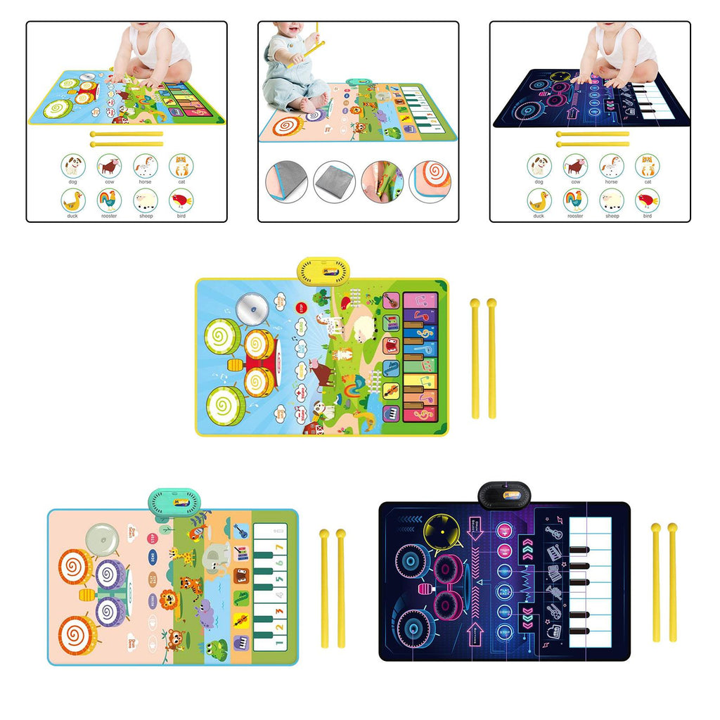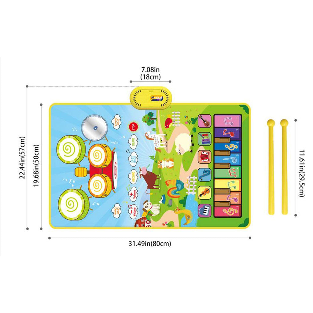【Music Mat for Infants】: This babies music toy piano mat and drum mat with 2 drumsticks, a great to develop baby's musical interest.