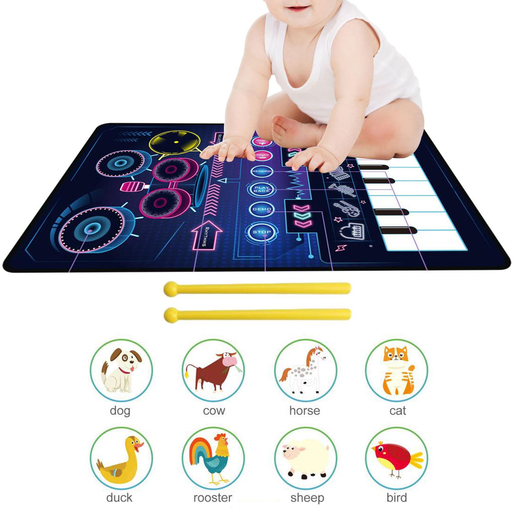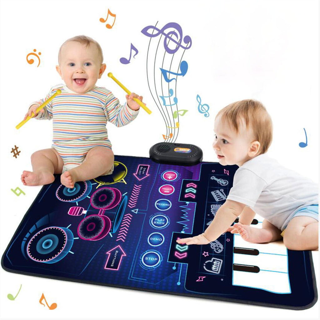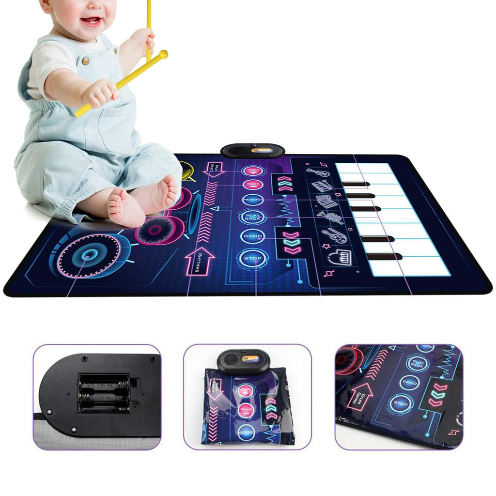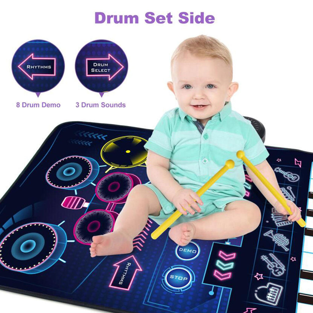 【Music Mat for Infants】: This babies music toy piano mat and drum mat with 2 drumsticks, a great to develop baby's musical interest.