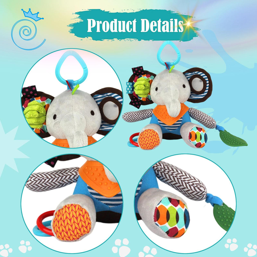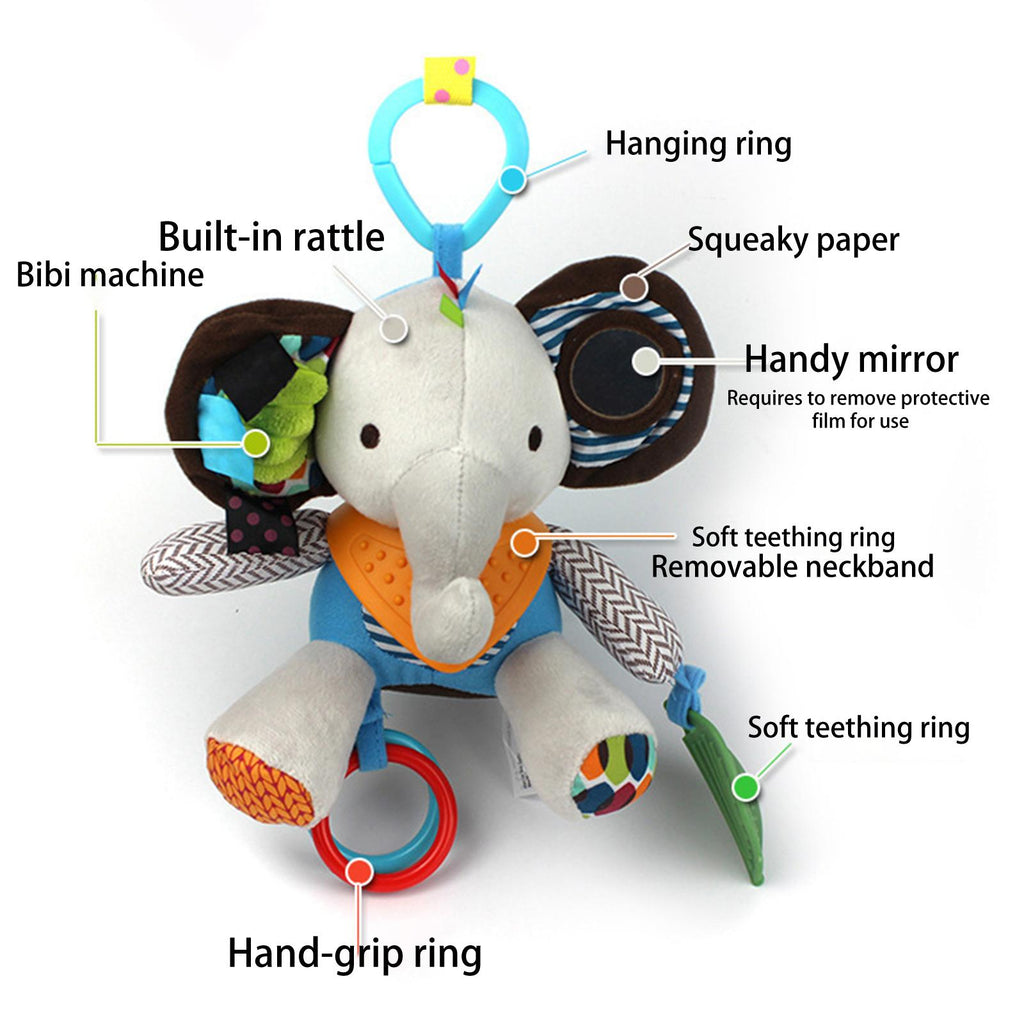 Baby Pram Toy Detachable Squeaky Hanging Soft Sensory for Girls Seat Nursery elephant