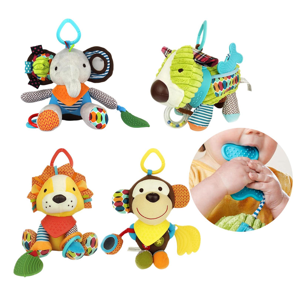 - 【Cute Animals】: Plush Toy features adorable animal designs to baby's attention and foster bonding, making it a cozy companion at home or on the go