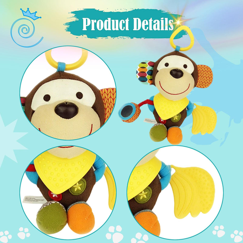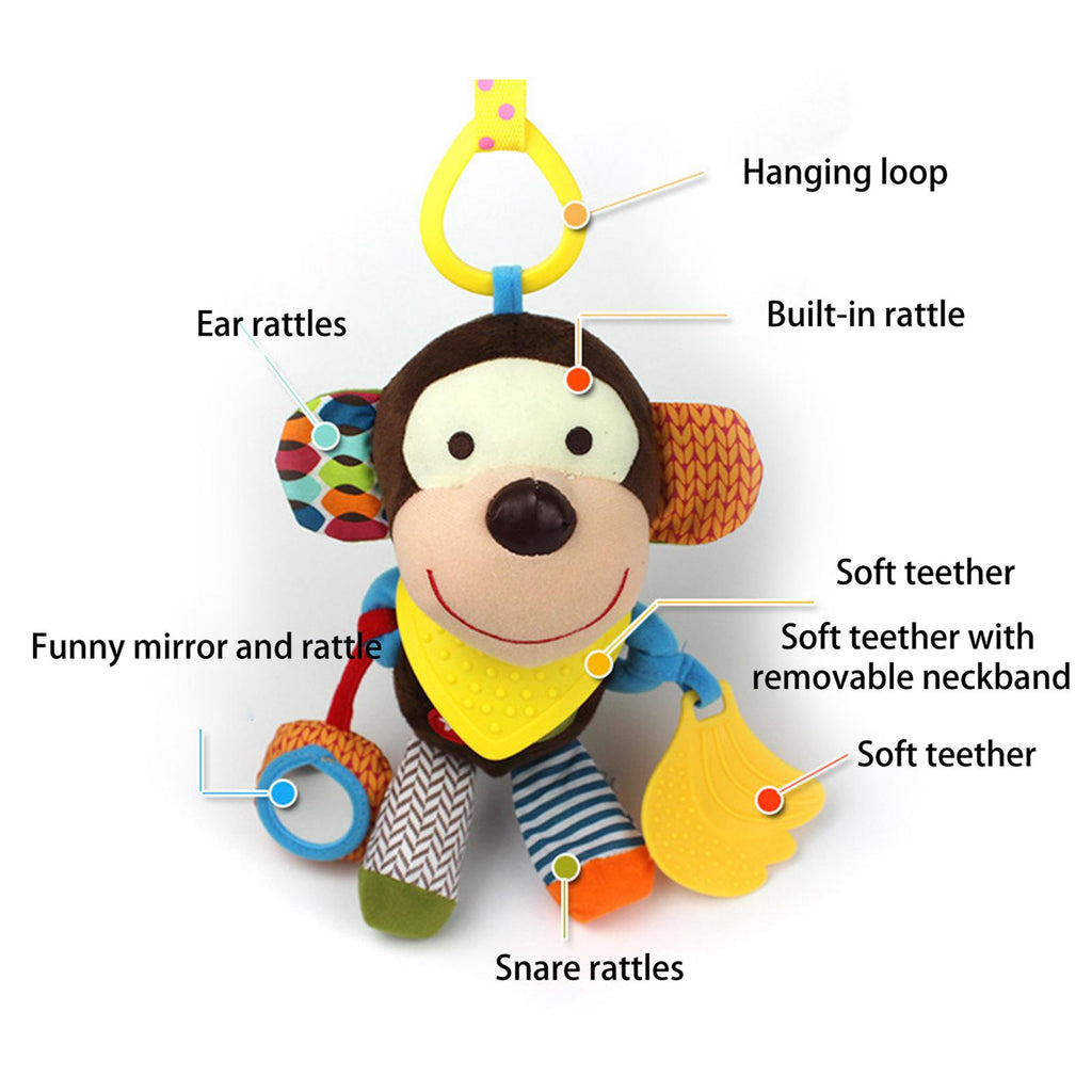 Baby Pram Toy Detachable Squeaky Hanging Soft Sensory for Girls Seat Nursery monkey