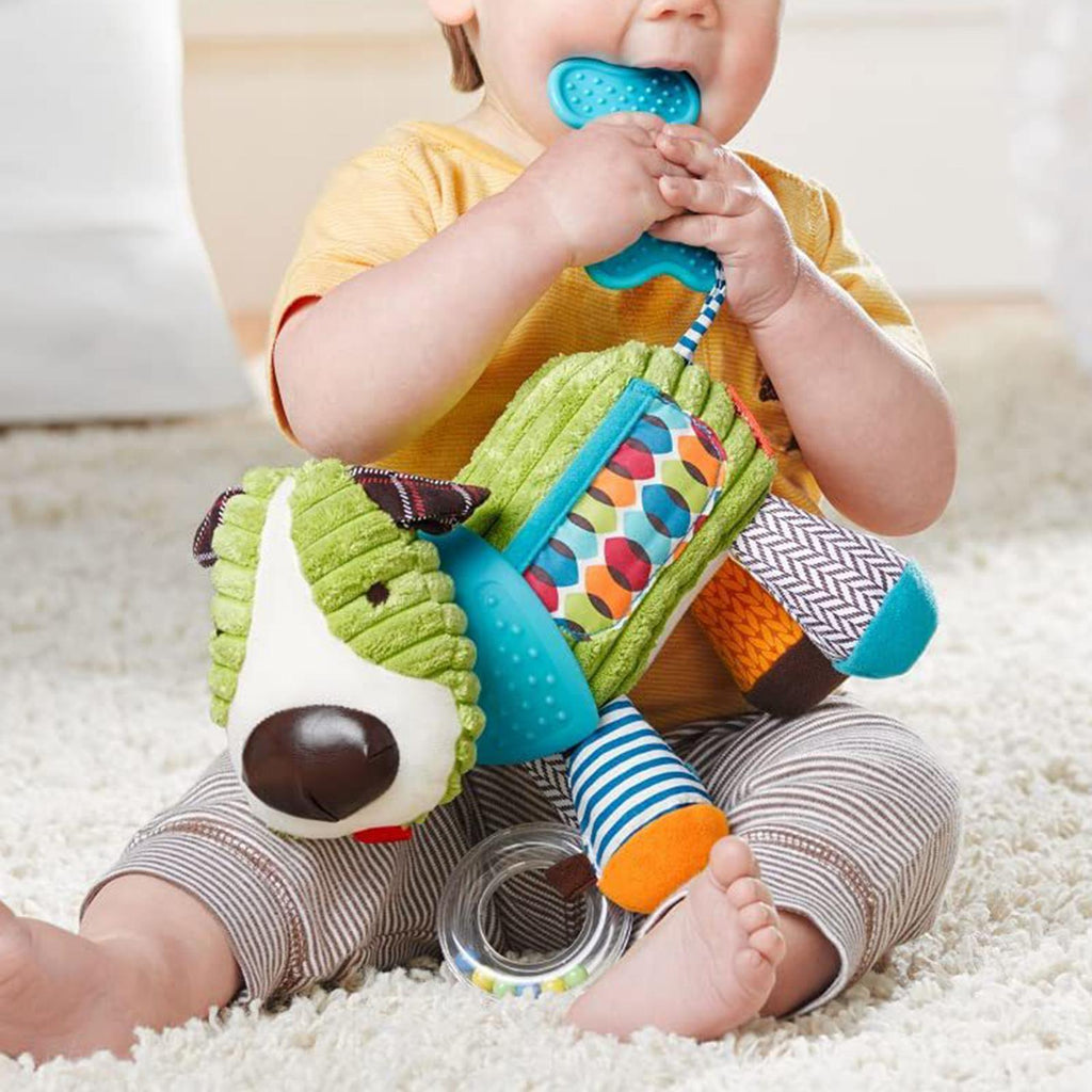 - 【Early Sensory Toy】: Educational Toy includes a variety of sensory elements, such as a built in rattle, rattle paper, and soft teether rings, to develop touch and hearing while supporting early development