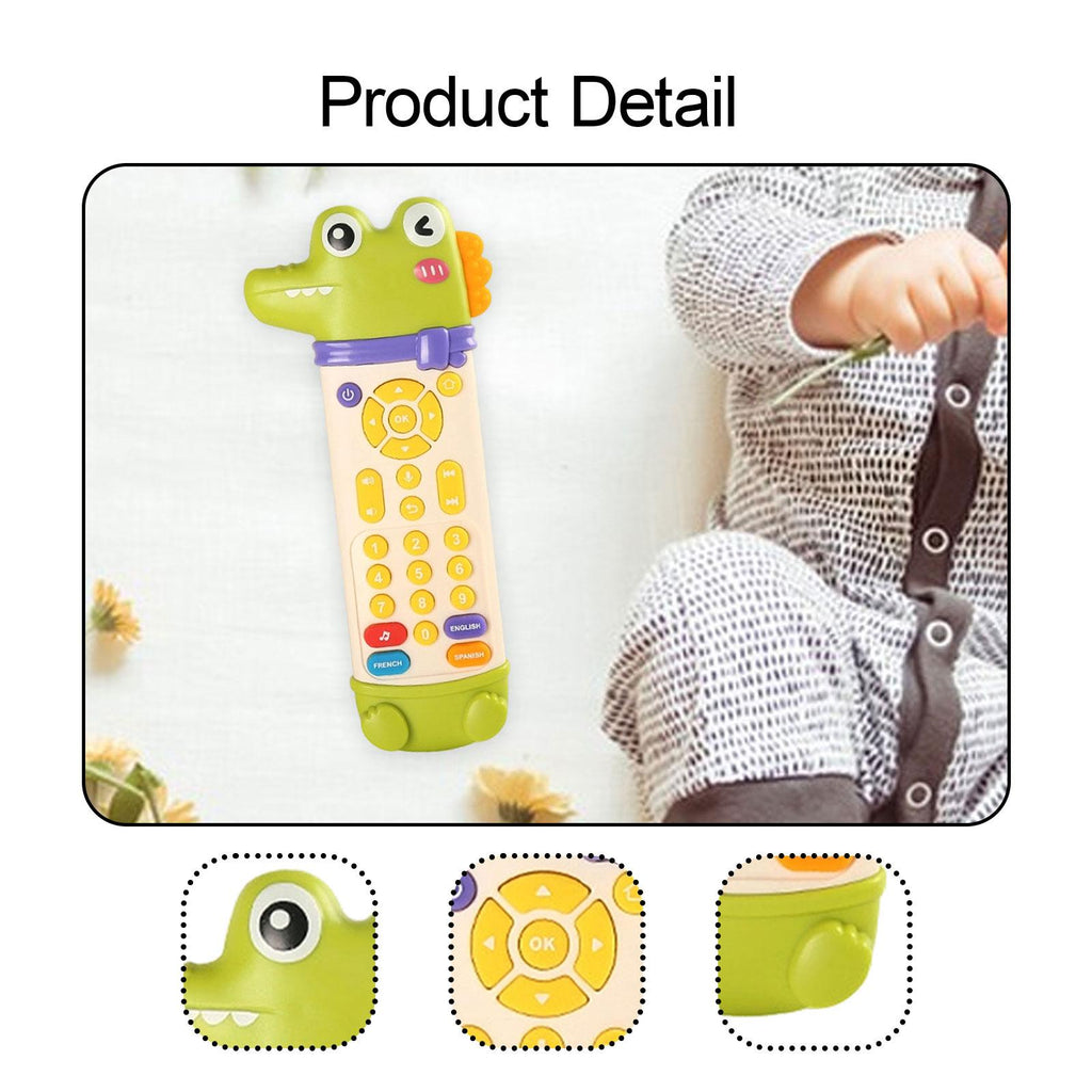 【Early Educational Toy】: The Infant TV remote toy adopts a cute aminal shape and colorful buttons to enhance color and sensory stimulation, promoting infants' hand eye coordination. And it also supports 3 languages (English, French and Spanish) switch, letting babies improve their skills while playing