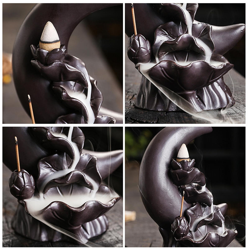 【Unique Design】: The backflow incense holder is designed with a moon design, making it an eye catching piece that will surely attract attention and compliments from guests.