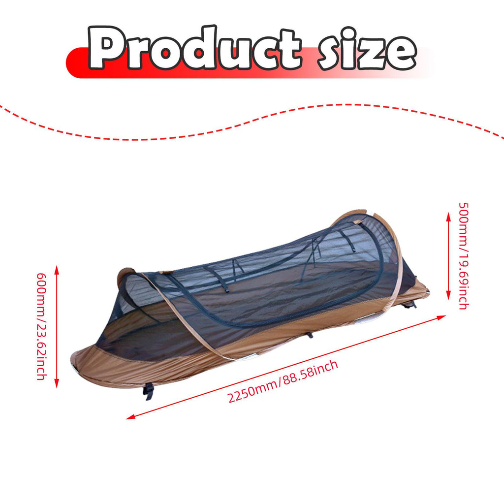 【Compact Size】: Outdoor Shelter measures 225cm x 50cm x 60cm (88.58 inches x 19.69 inches x 23.62 inches) when assembled, providing ample space while maintaining a compact footprint, making it ideal for solo adventures