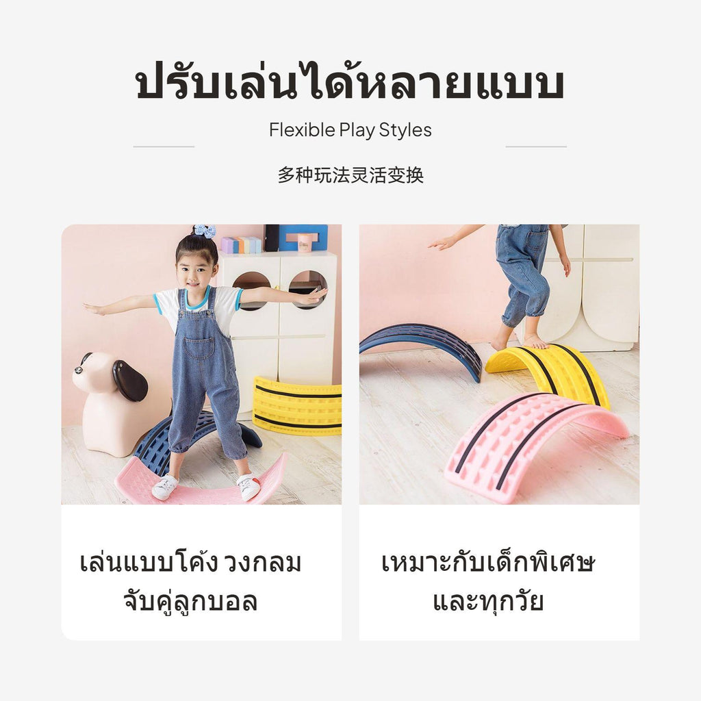 【Versatile Sensory Training】This balance board for kids combines a seesaw, curved board, and sensory training tool, ideal for developing balance, coordination, and focus in children aged 0-6.【Safe Anti-Slip Design】Features a 35° smile arc, dual anti-slip strips, and textured surface to enhance grip and ensure safe play for your child.【Multiple Play Modes】Can be used for balance training, relaxing, or creative games, stimulating imagination and enriching indoor activities.【Durable High-Quality Material】Made from sturdy plastic, this board is built to last and supports different age groups for long-term use.【Colorful Options & Load Capacity】Available in vibrant colors and various weight capacities to meet diverse preferences and developmental needs.Specification: