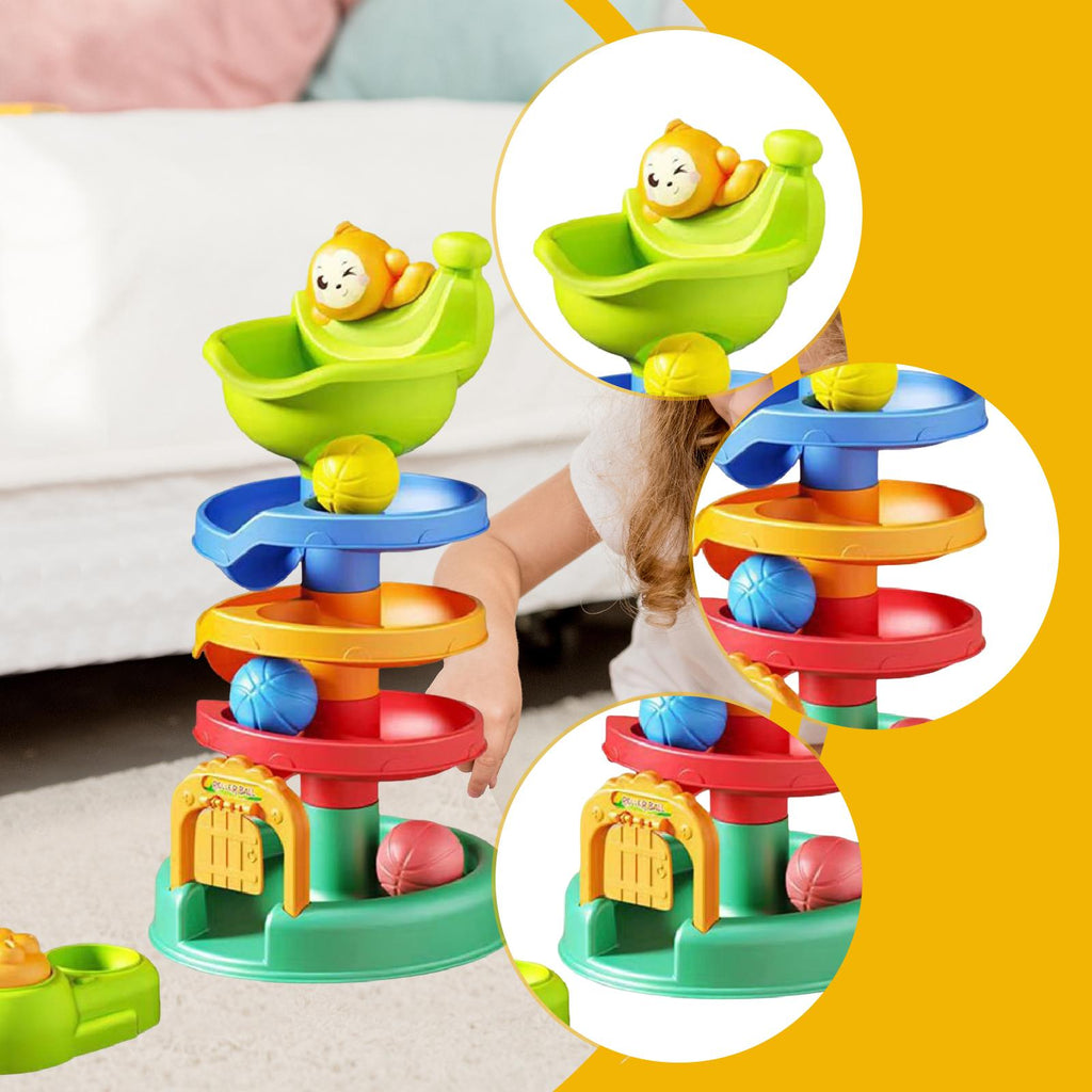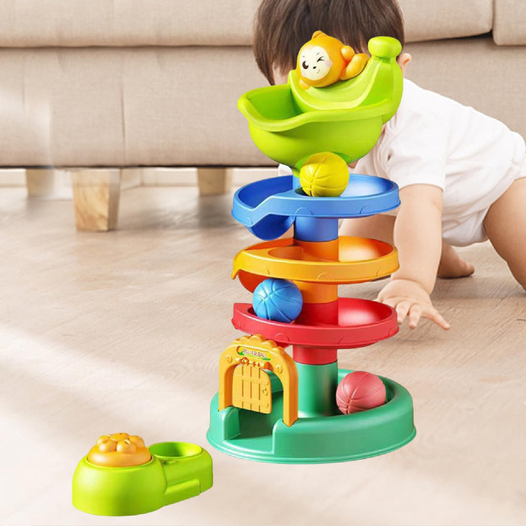 - 【Features】: Roll Swirling Ball Tower features vivid colors that promote color recognition and shape awareness, supporting visual development while nurturing early aesthetic appreciation through captivating contrasts