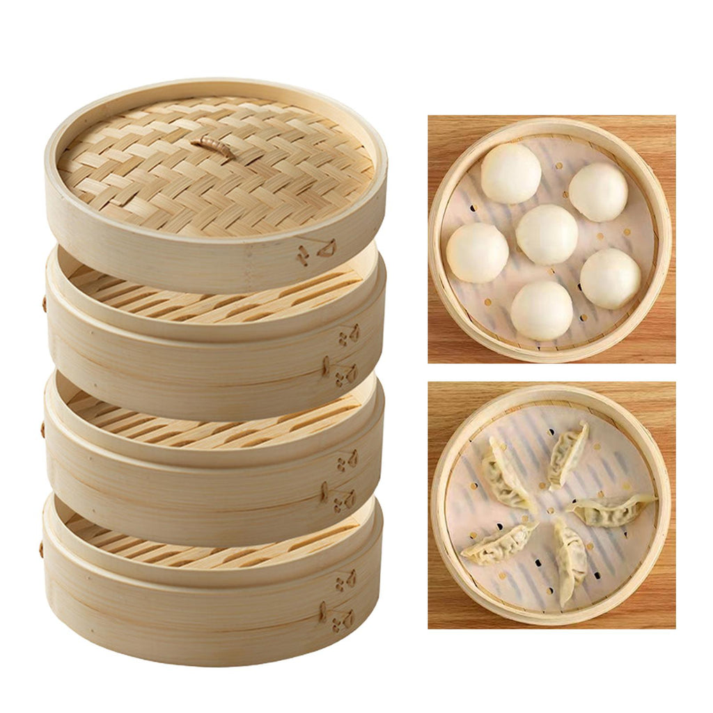 【Widely Used】: Cooking food with a bamboo steamers is a lot better than frying or grilling food Steamer is for asian food, such as vegetables, rice, fish, dimsum, dumplings, buns, meat, etc.