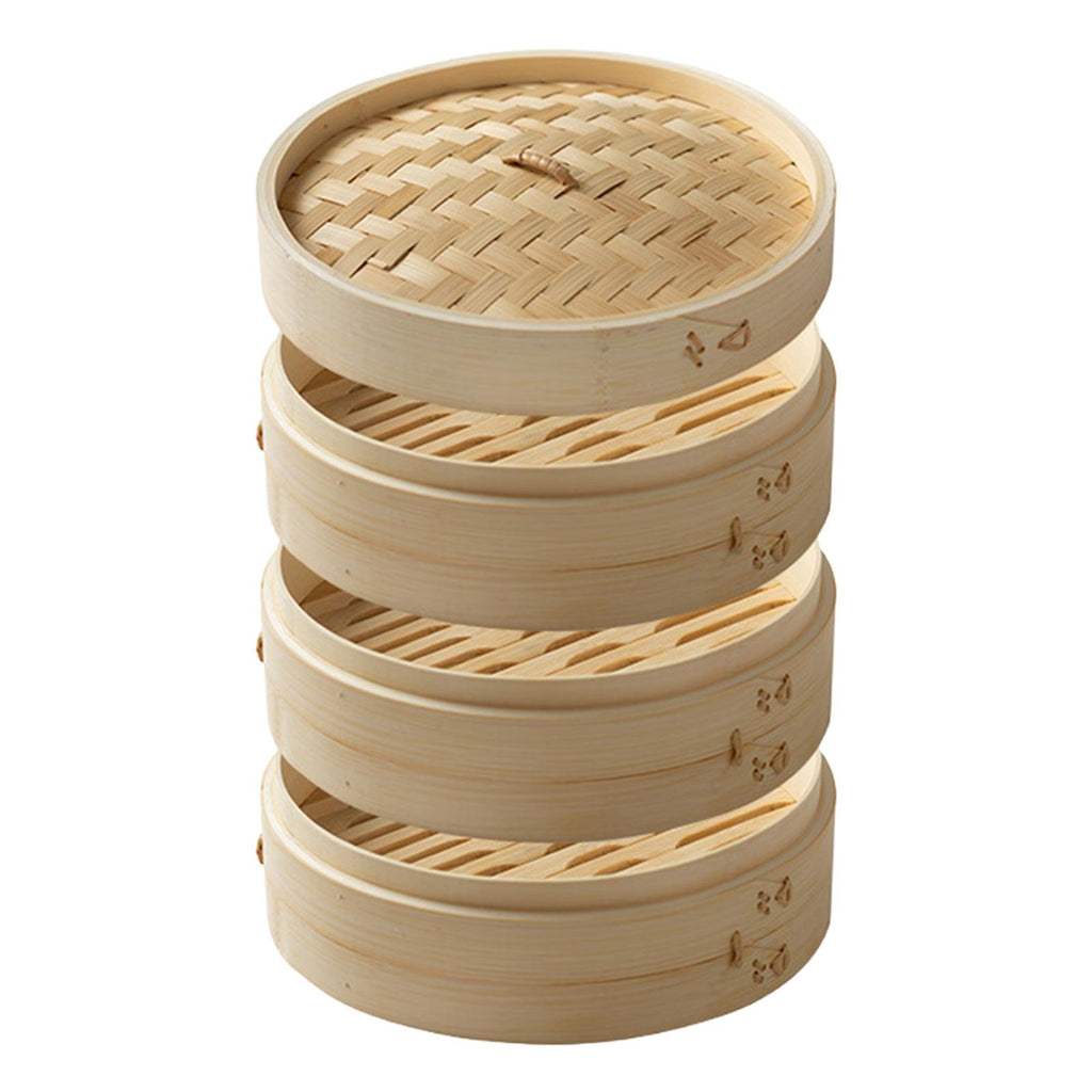 Maxbell Bamboo Steamer Basket Steamer Cloth Vegetable Steamer for Dimsum Bao Chicken Dia 25.4cm 3 Tier