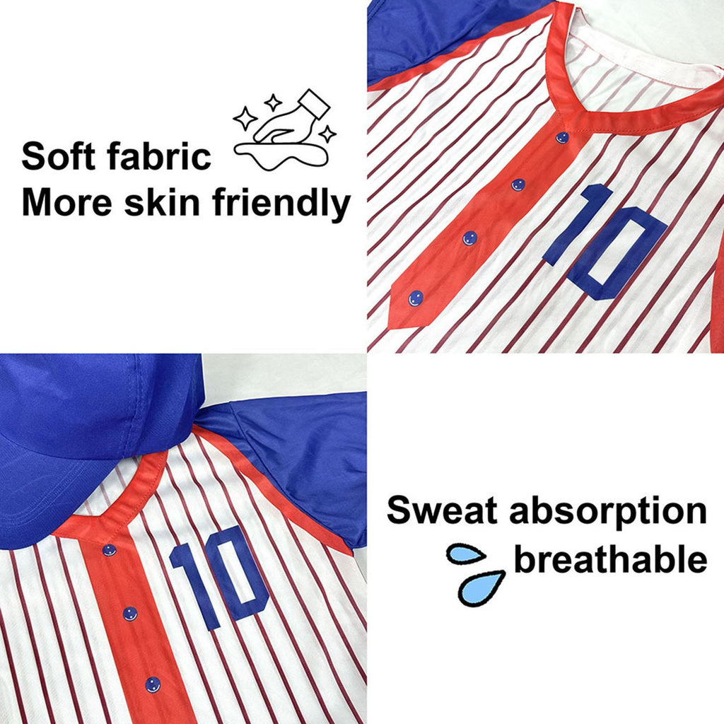 【Polyester Material】: Baseball player costume made of quality polyester, it's comfortable enough for games, parties, or dress up adventures