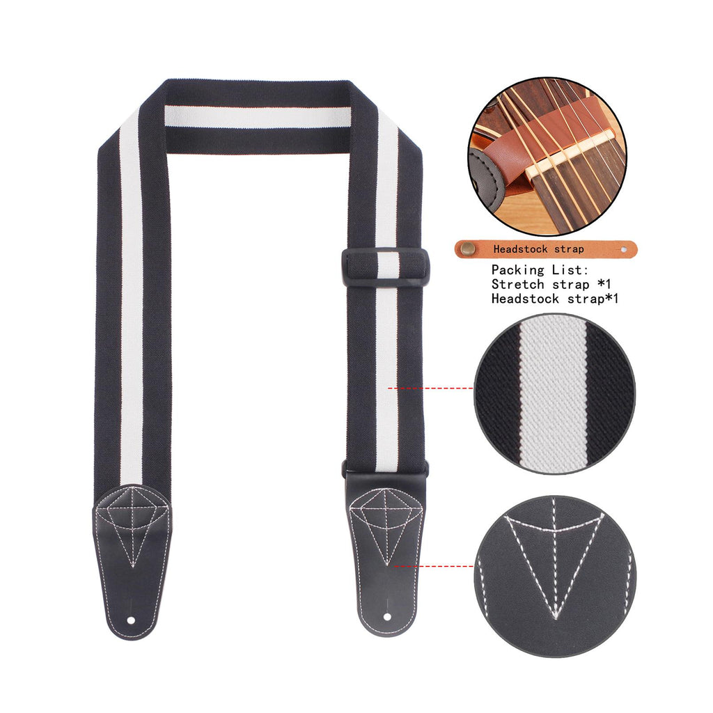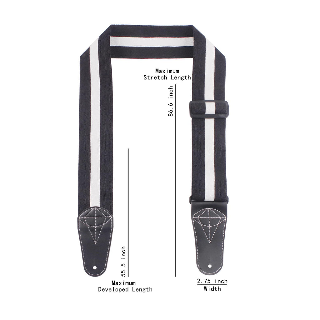 Maxbell Bass Guitar Strap Durable for Bass Guitars Electric Guitar Classical Guitars Black White