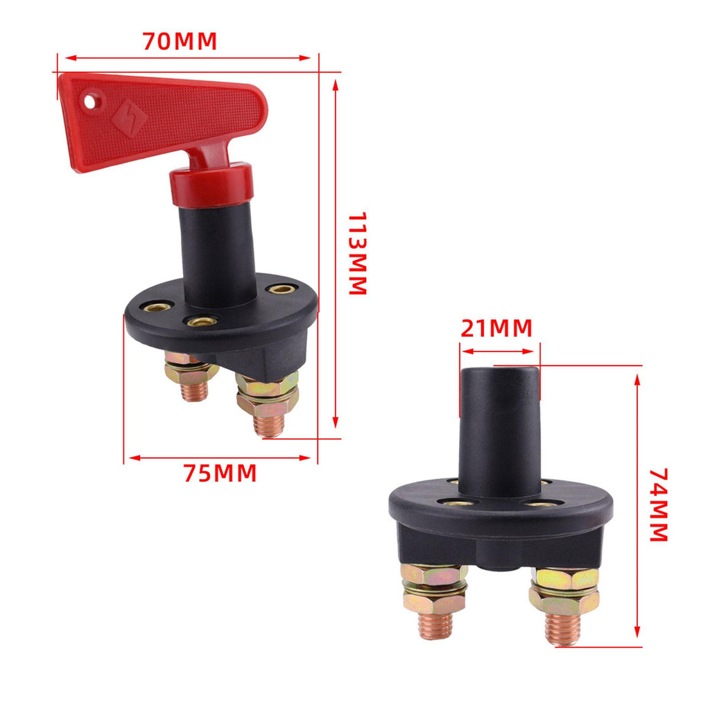 【Widely Applicable】: Cut off battery power switch is suitable for various types of vehicles such as RVs, yachts, motorcycles, trucks, cars, etc. It can also be used on other electrical equipment that requires power off switching.
