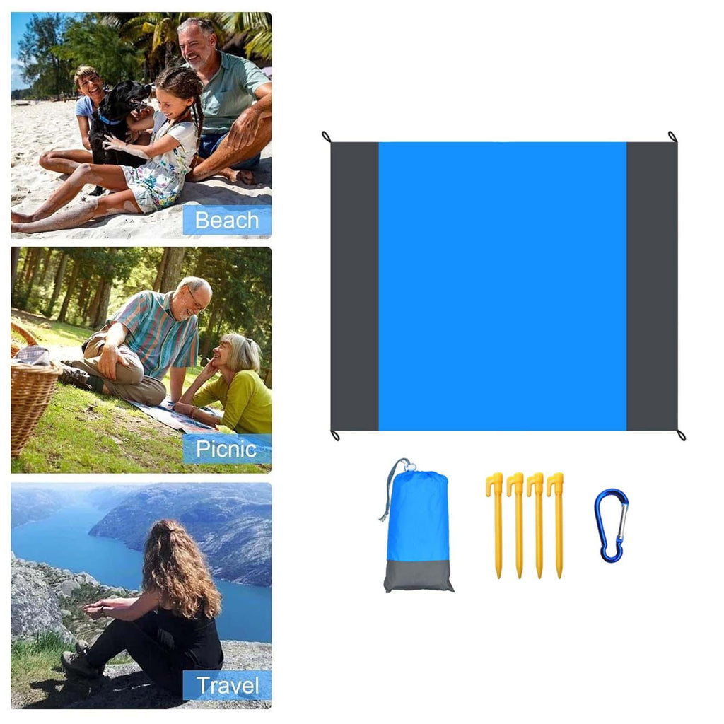 Maxbell Beach Blanket Toy Pad Waterproof Foldable 78.74inchx82.68inch Picnic Blanket blue gray