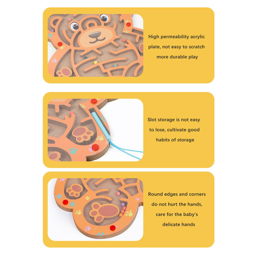 【Material】: This magnetic bead maze is made of wood and acrylic plate, with bright colors, smooth and durable. Children can play with confidence.