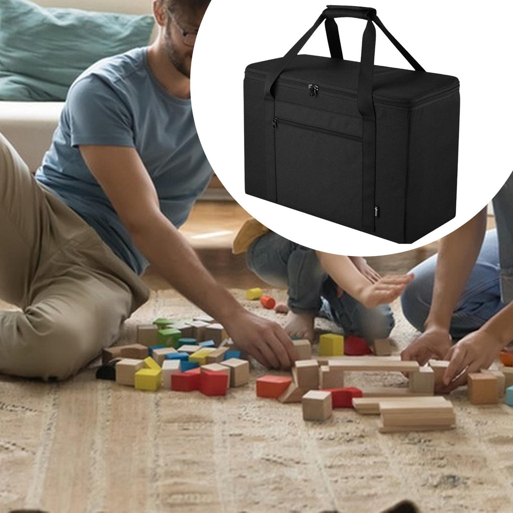 - 【User Friendly Design】: Featuring a full top double zipper opening and external front/back pockets, this toy organizer tote provides effortless access for blocks, game pieces, and accessories