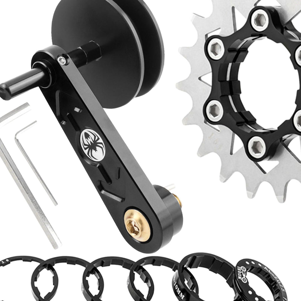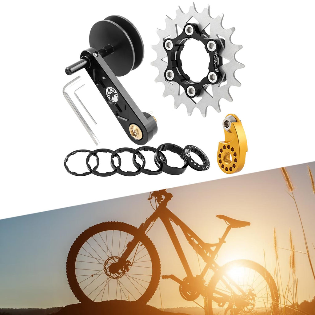 【Deisgn】This bicycle chain adjuster can change multi speeds bikes into single speed bike, prevent the chain from slipping, adjustable design provides stronger tension for your chain to make you pedal with less effort.