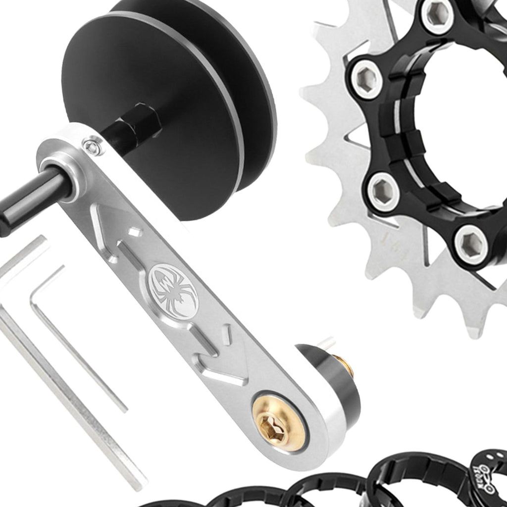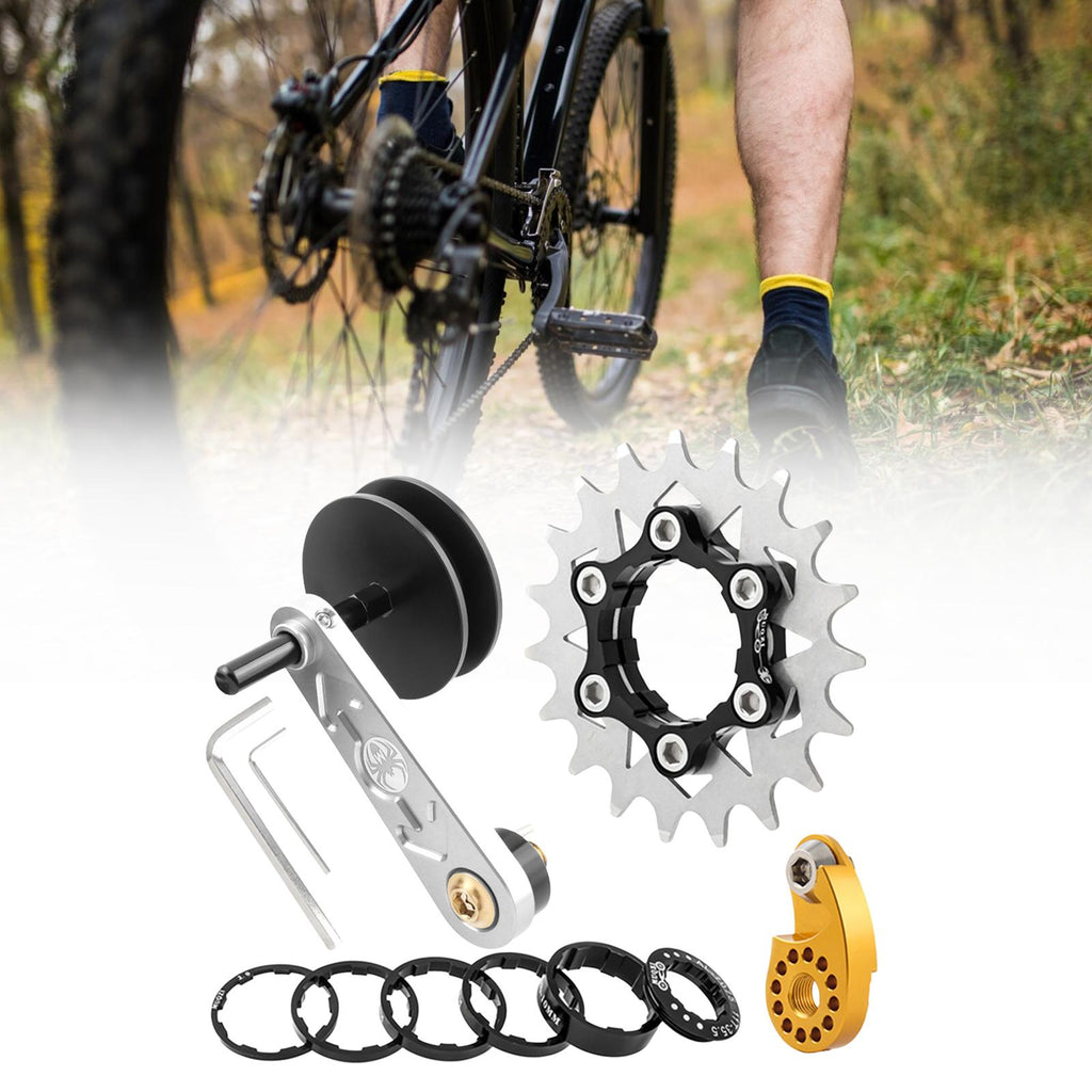【Deisgn】This bicycle chain adjuster can change multi speeds bikes into single speed bike, prevent the chain from slipping, adjustable design provides stronger tension for your chain to make you pedal with less effort.