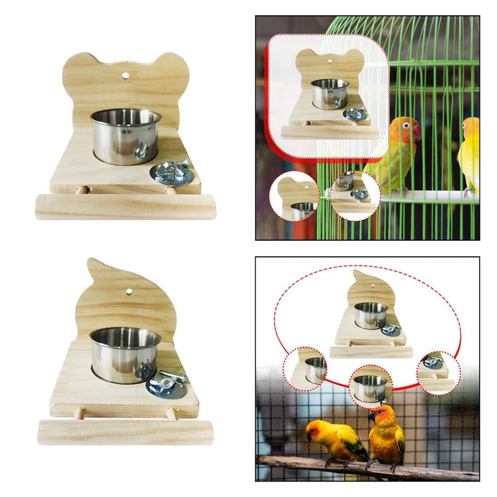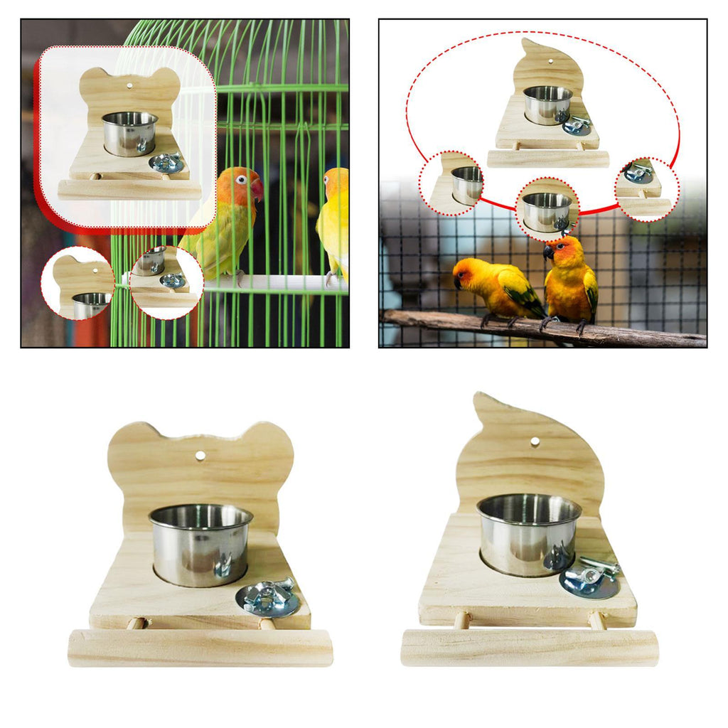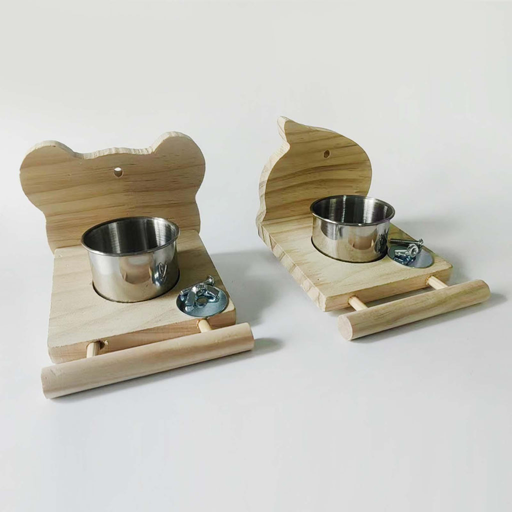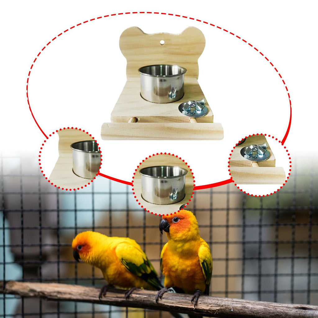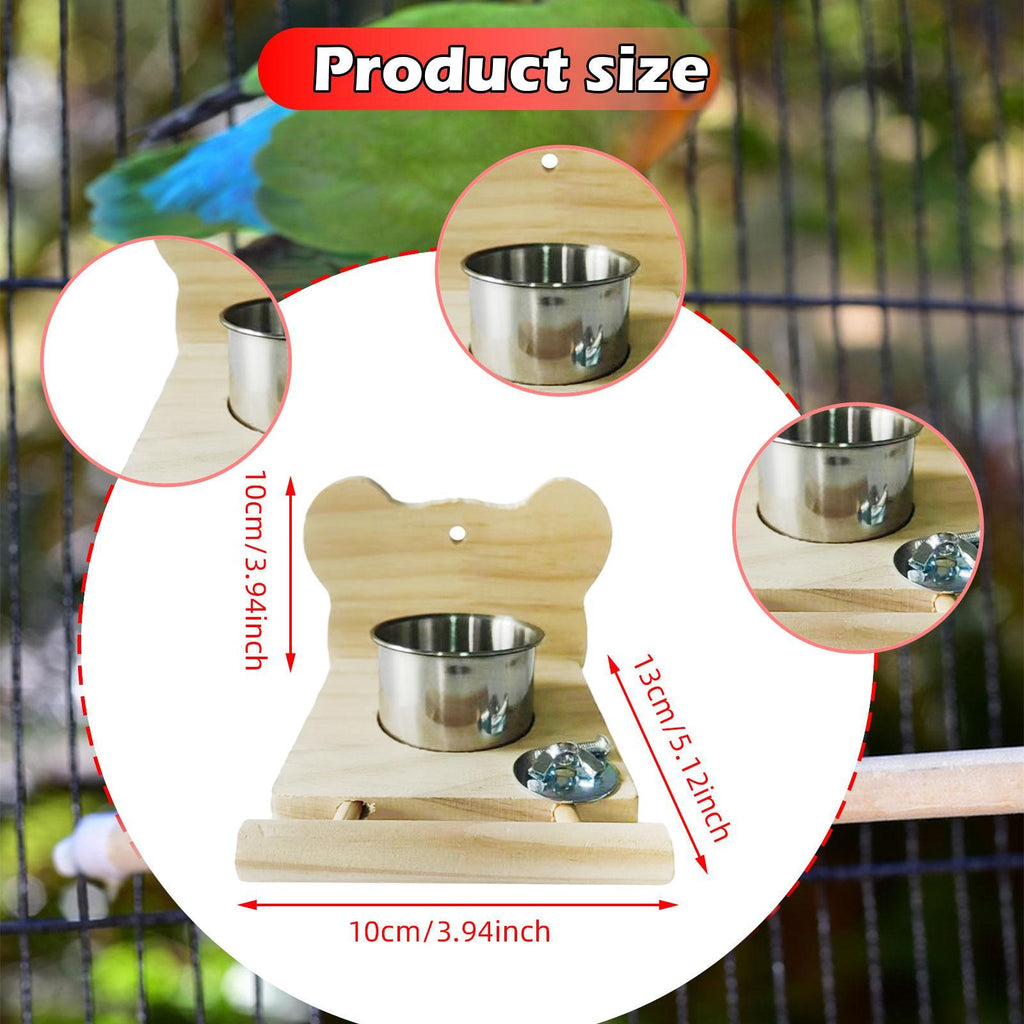 【Material】: Our bird food bowl set is made of wood and stainless steel, which stands wear and tear and resists rust and cracks. This product is a good choice for feeding your pet birds which create a friendly environment for you pet to grow up