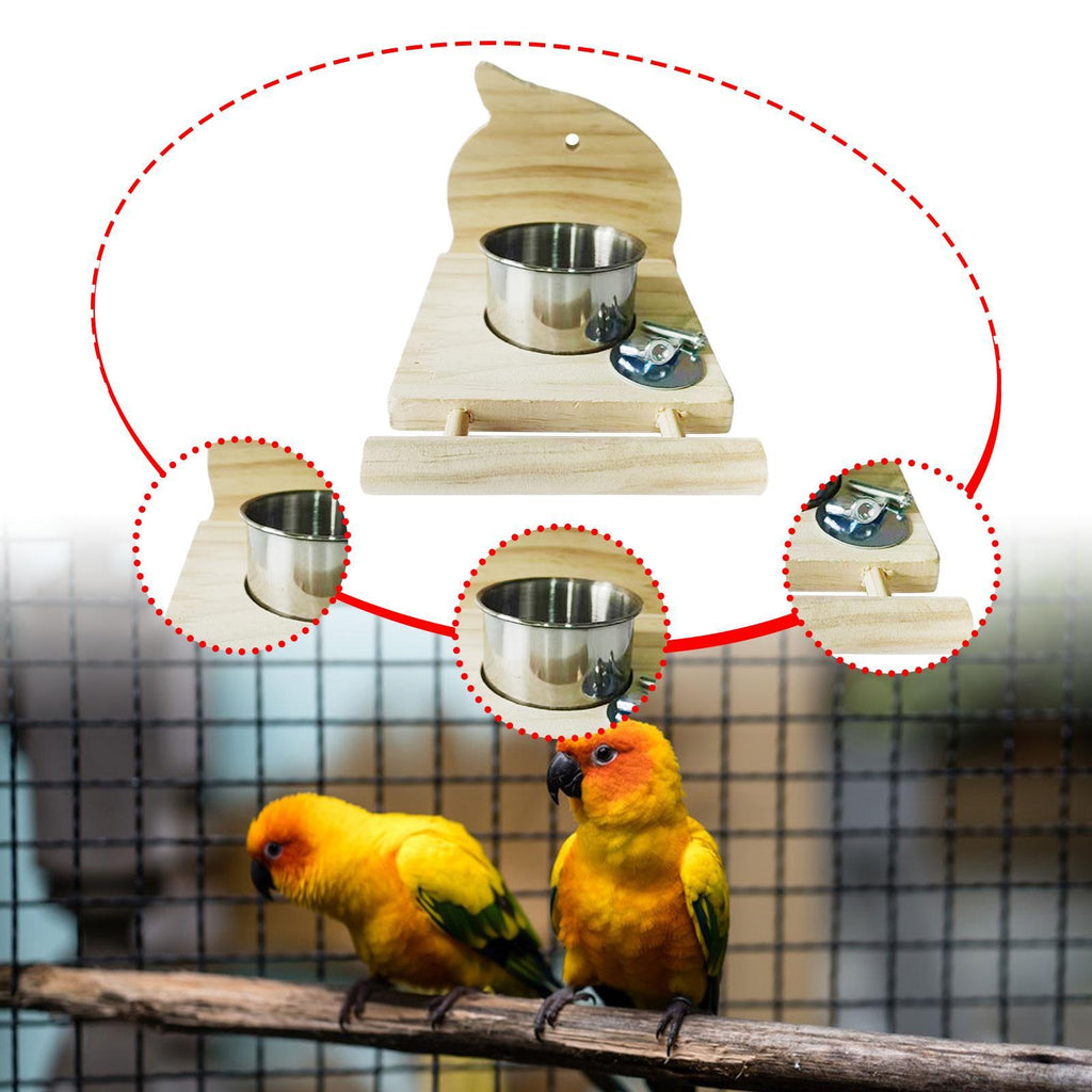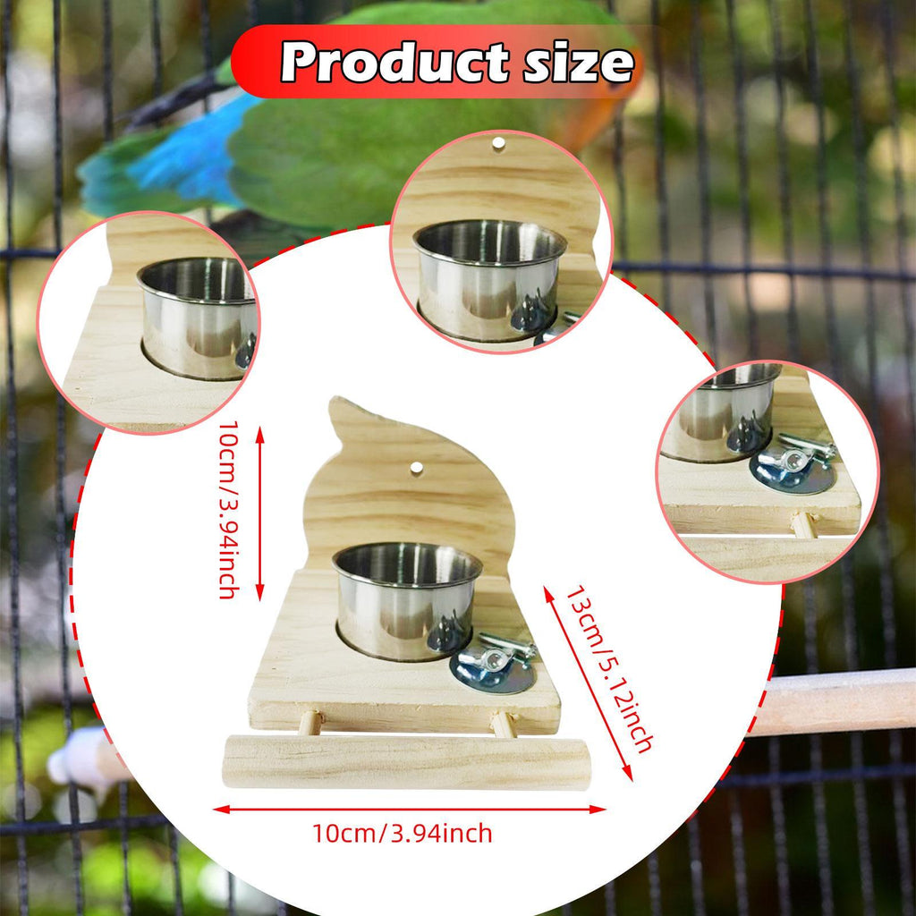 【Material】: Our bird food bowl set is made of wood and stainless steel, which stands wear and tear and resists rust and cracks. This product is a good choice for feeding your pet birds which create a friendly environment for you pet to grow up