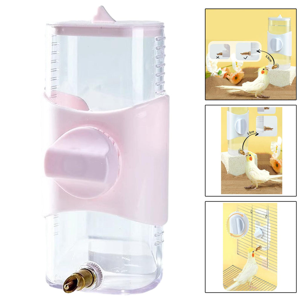 Maxbell Bird Drinker Drinking Device Parrot Waterer for Medium Birds Parakeet Rabbit Pink
