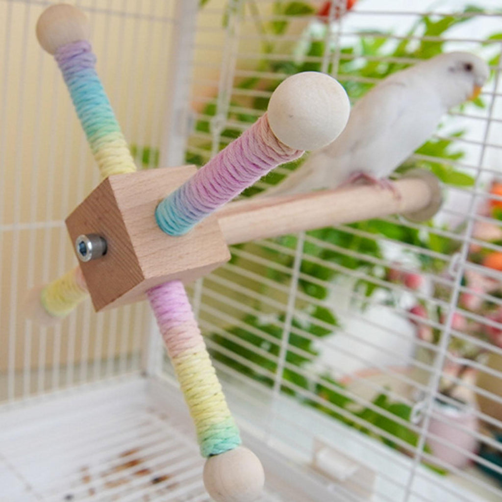 Maxbell Bird Stand Perch Toy for Small Birds Easy to Install Fun Parrot Parakeet Toy