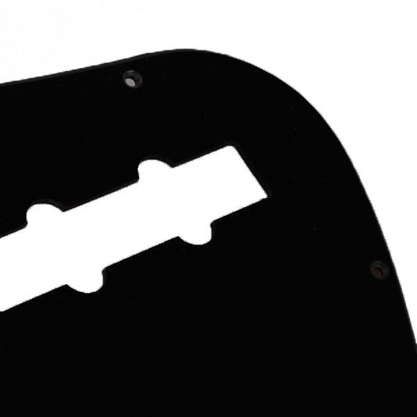 This black guitar pickguard is designed for Jazz Bass guitar or similar. It is finished with 1 ply bevel edge and has 10 screw holes in the side of the pickguard. Great replacement for your broken, dirty or old guitar pickguard. Sure to make your guitar look new again!