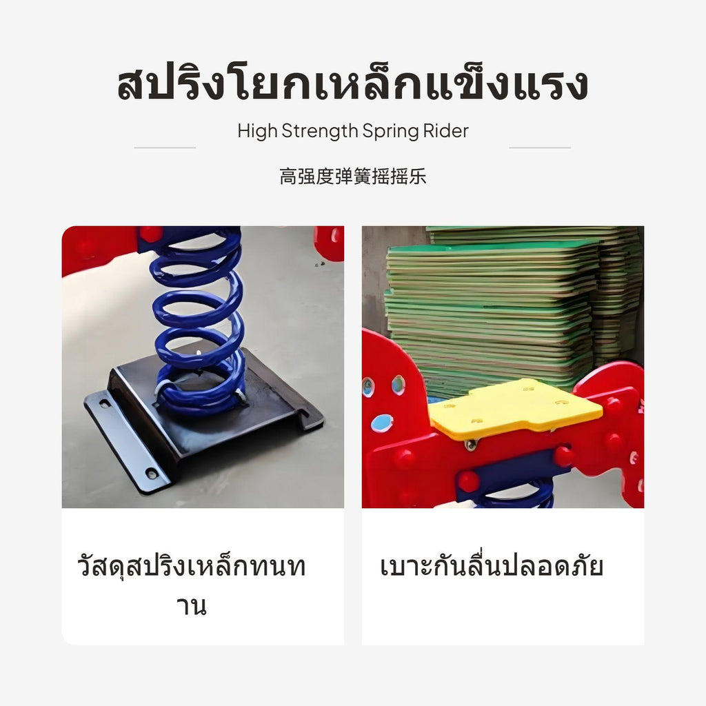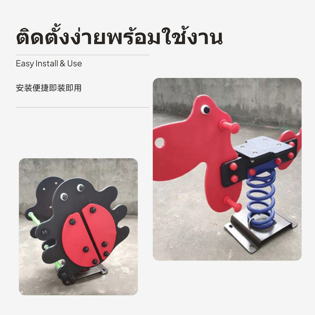 【robust Safe framework】 This bounce rocking toy features a sturdy metal base and high-strength bounce, ensuring stability and security for children during play period.【Multiple Cartoon Designs】 Available in various fun creature and vehicle designs, such as teddy, horse, car, and more, to suit different children's preferences.【Promotes bodily Development】 The rocking motion helps kids improve balance and coordination, making it both entertaining and beneficial for fitness.【perfect for Outdoor Spaces】 Perfect for installation in kindergartens, parks, residential communities, and playgrounds, adding lively color and fun to any area.【Random design Delivery】 Please note: designs are shipped randomly. Each toy comes with polished edges, easy-grip handles, and footrests for added comfort and safety.Specification: