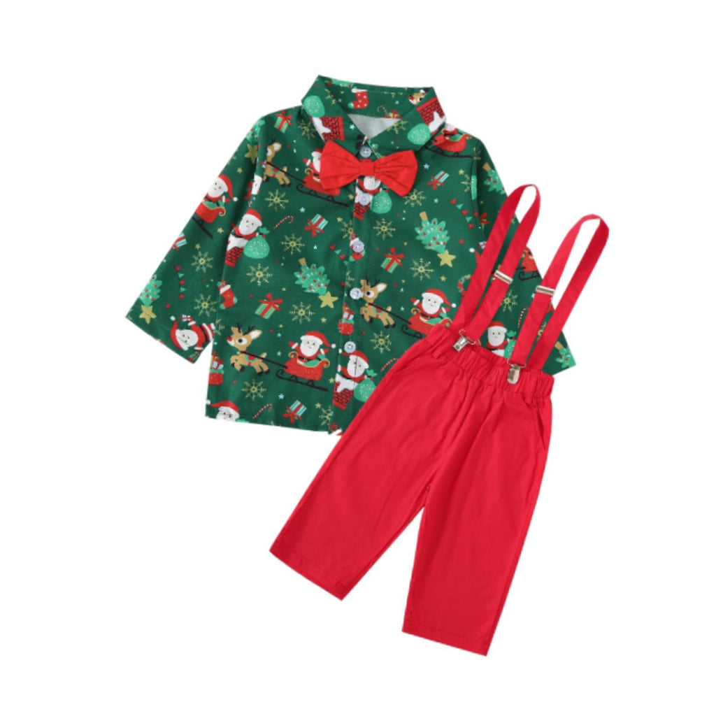 【Christmas Gentleman Outfit】: This festive ensemble is great for your little gentleman to celebrate the holiday season in stylish. It includes a shirt, pants, bow tie