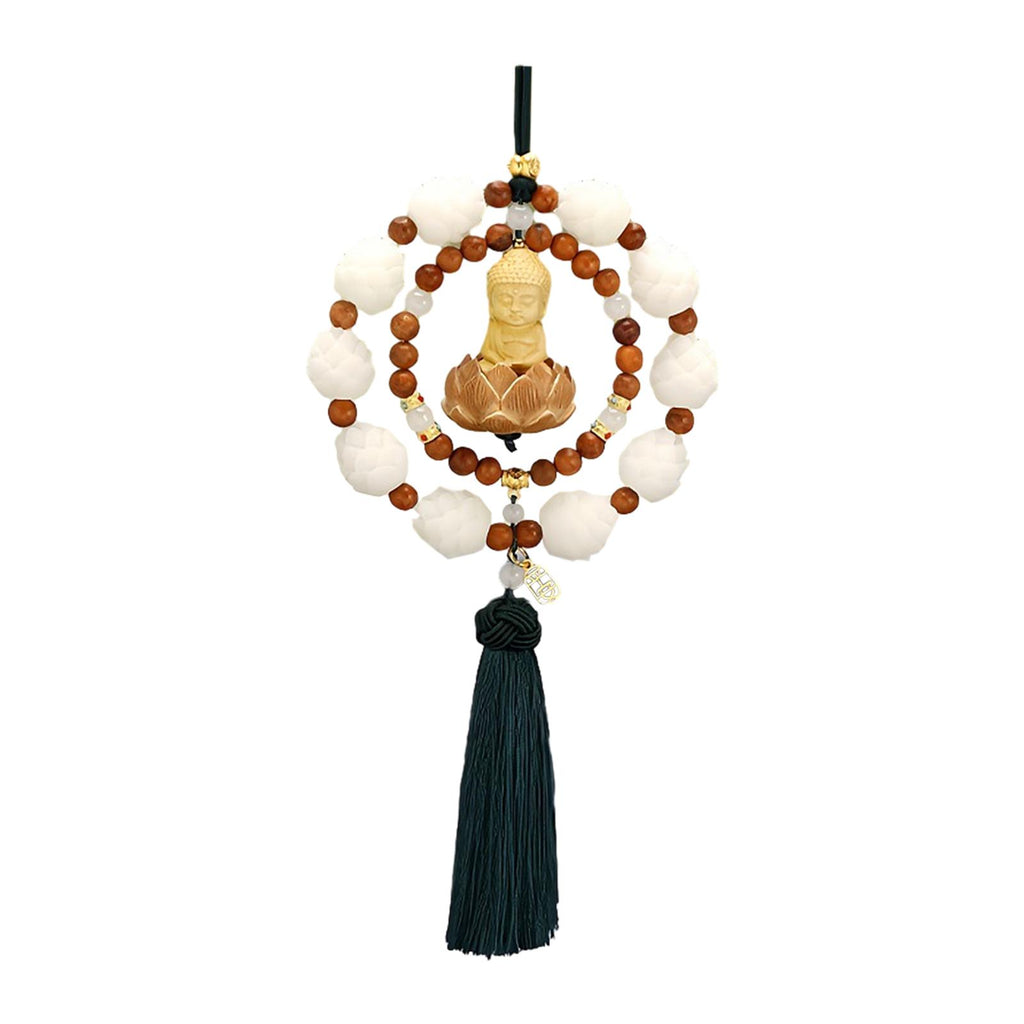 【Auto Interior Dangle】: Delicate Buddha statue car rearview mirror pendant, decorated with lotus beads, round beads and tassel pendant, excellent and beautiful.