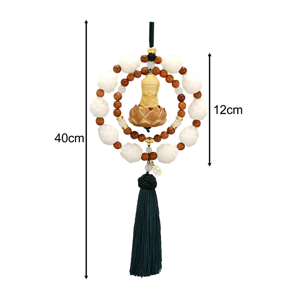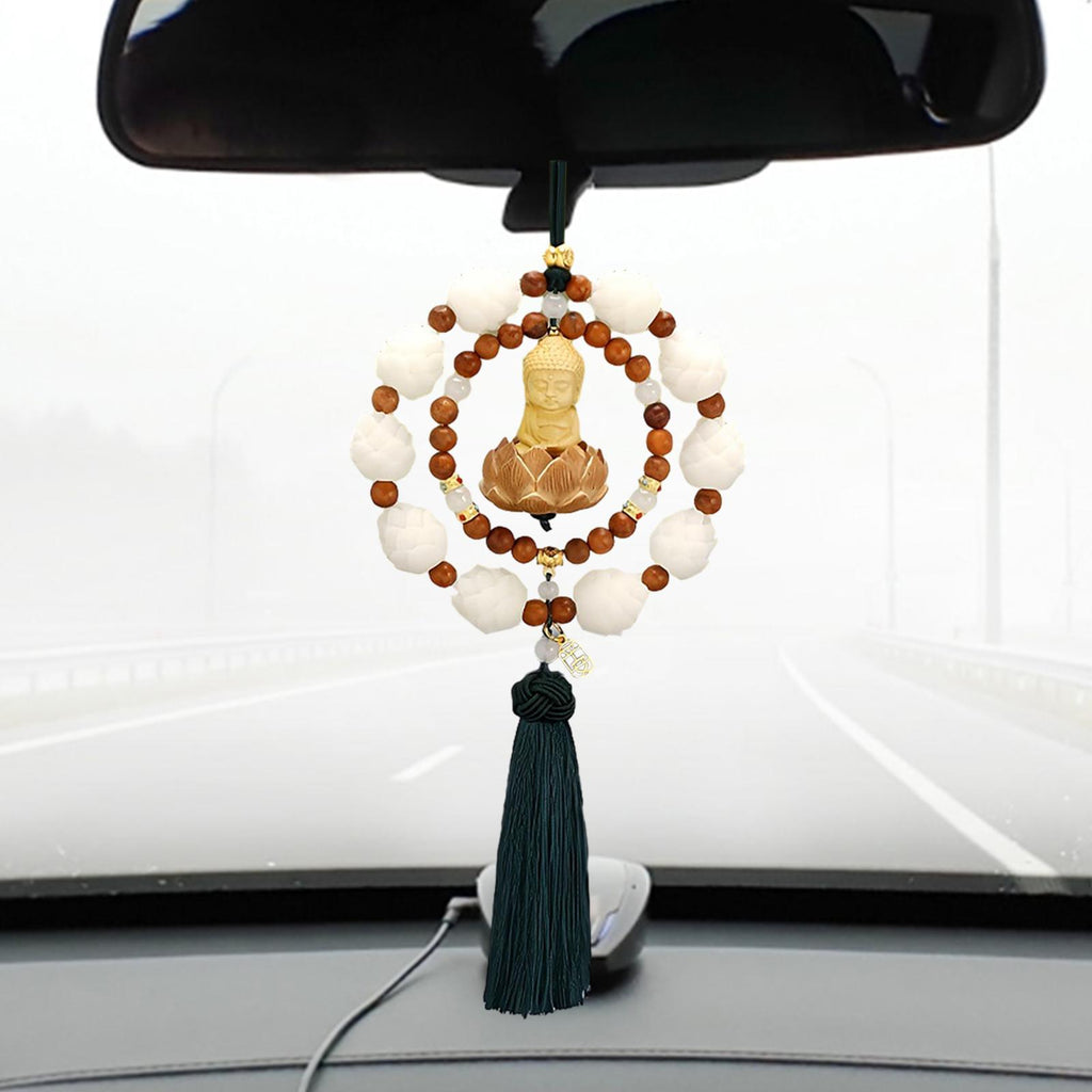 Maxbell Buddha Car Hanging Ornament Buddha Statue Decorative Rearview Mirror Pendant Green Tassel