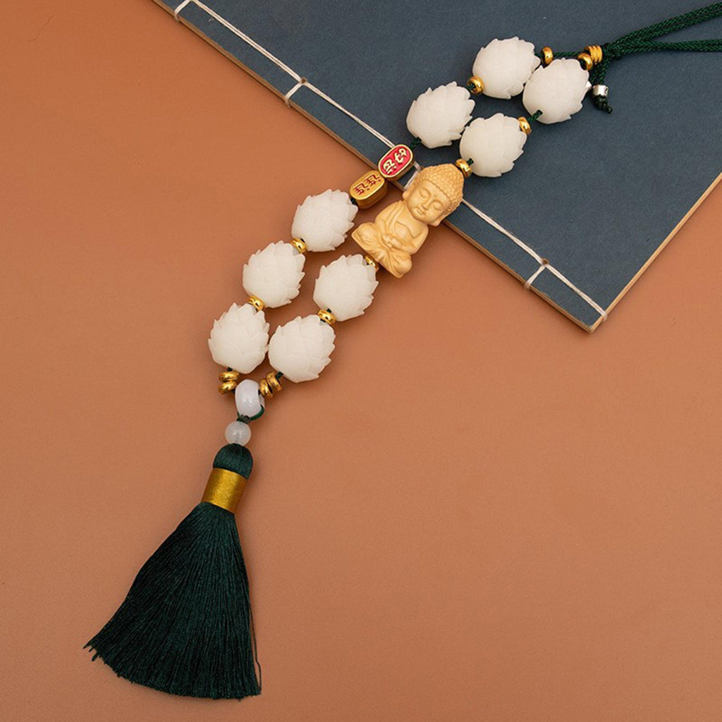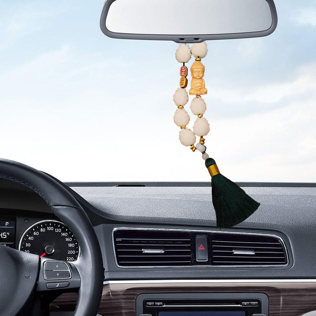 【Auto Interior Dangle】: Delicate Buddha statue car rearview mirror pendant, decorated with lotus beads and tassel pendant, excellent and beautiful.