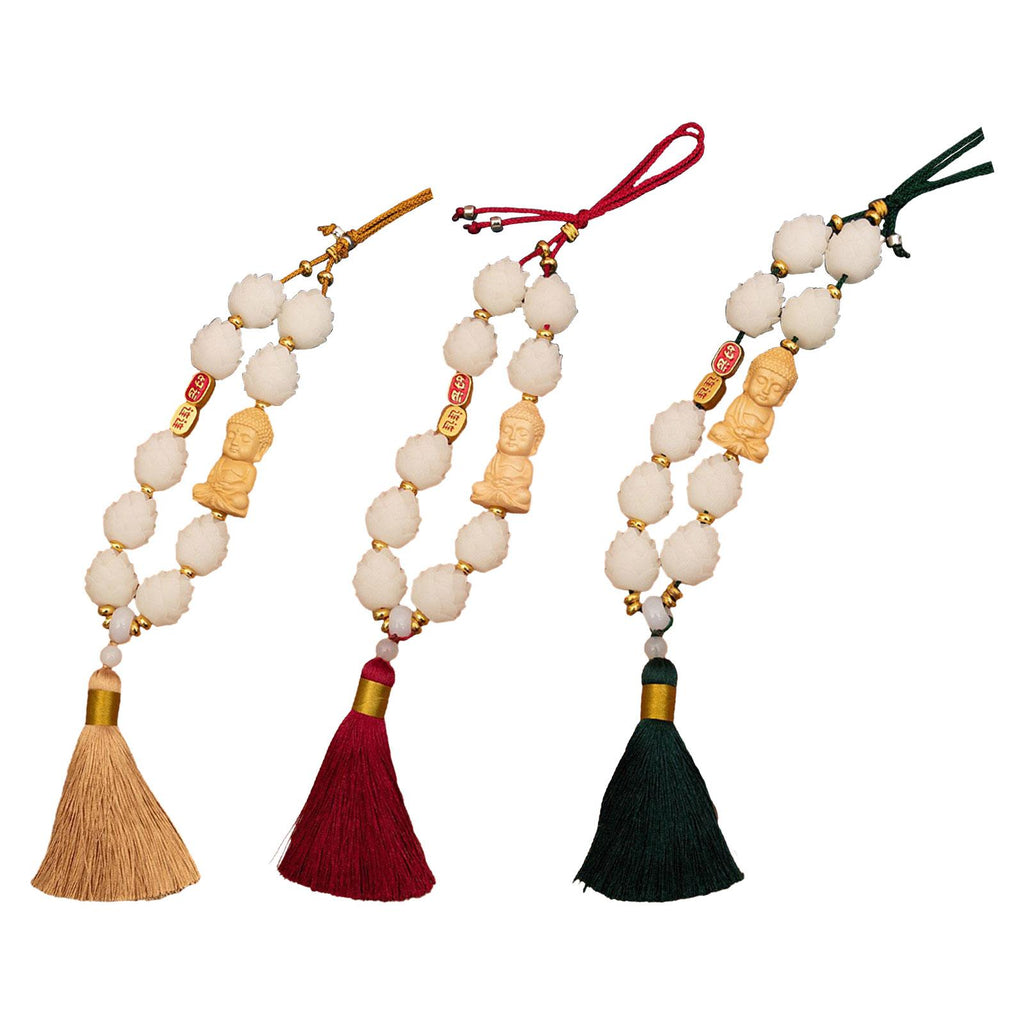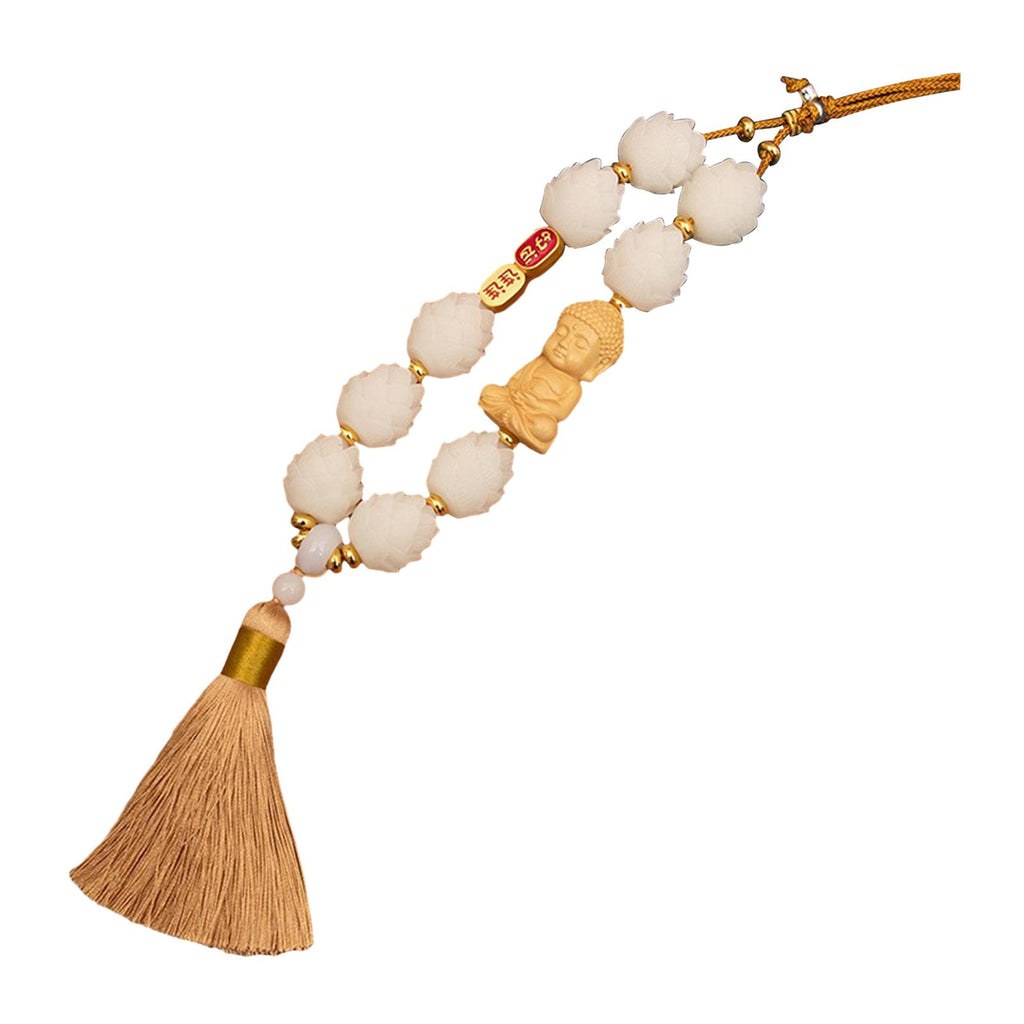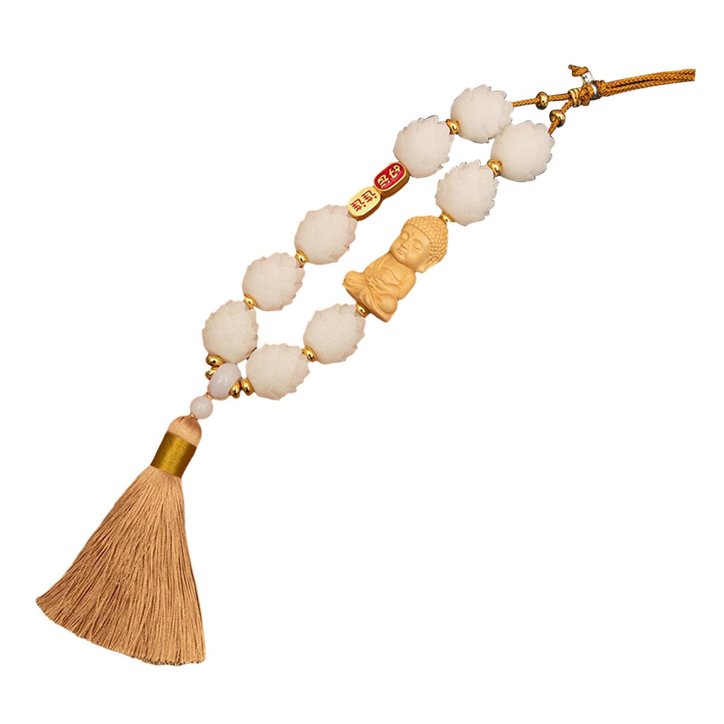 【Auto Interior Dangle】: Delicate Buddha statue car rearview mirror pendant, decorated with lotus beads and tassel pendant, excellent and beautiful.