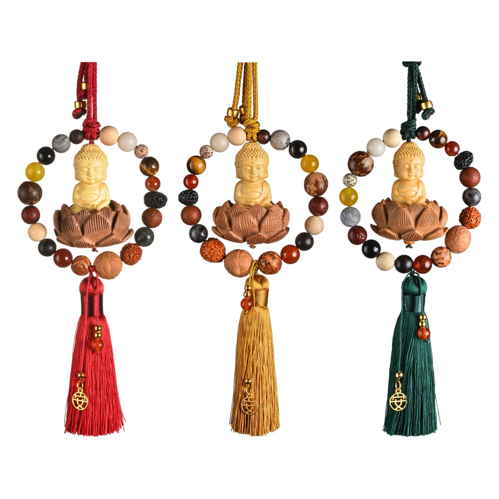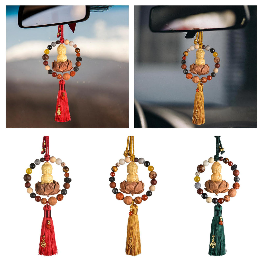 Maxbell Buddha Statue Car Rearview Mirror Pendant Gift Tassel Car Hanging Decoration red tassel