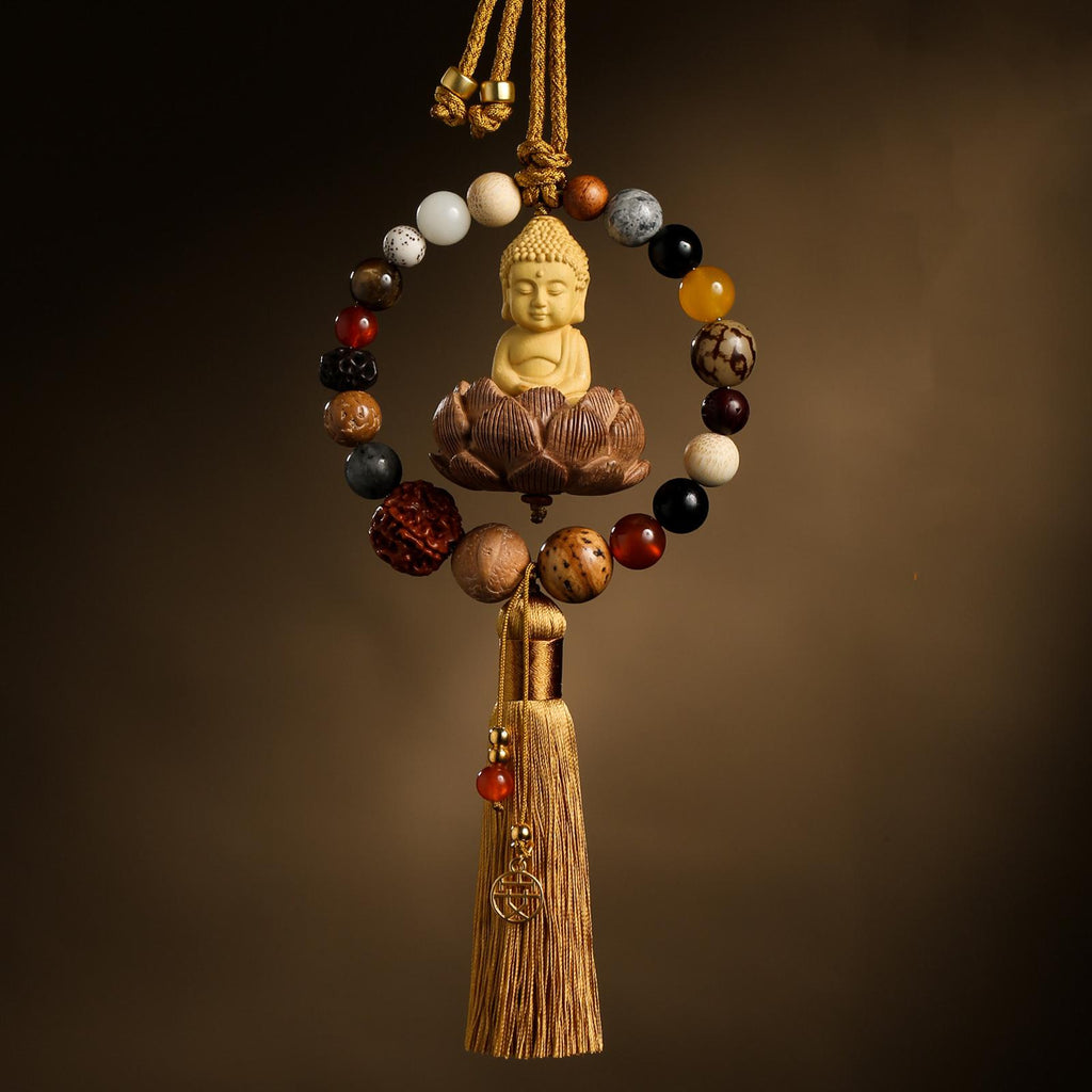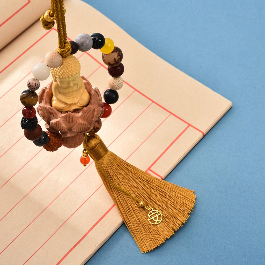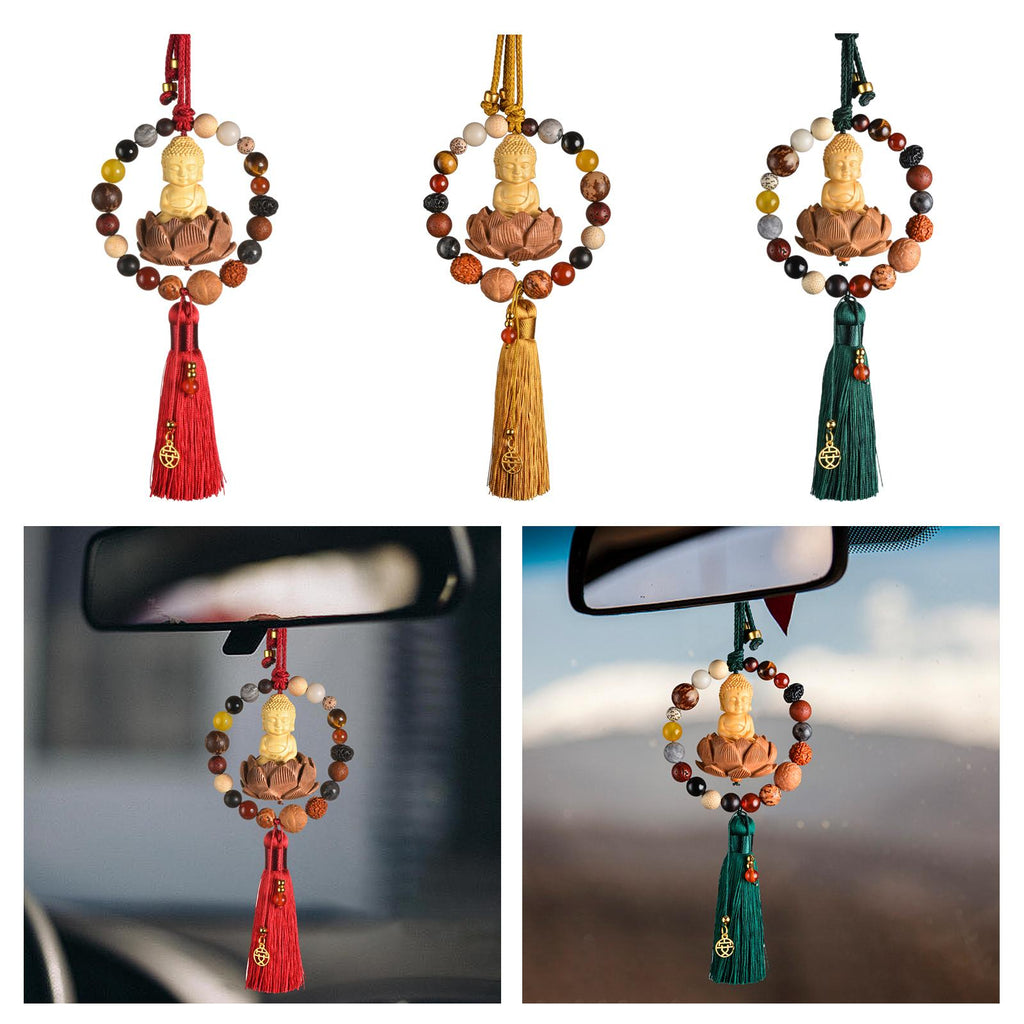 【Auto Interior Dangle】: Buddha Statue Car Pendant, exquisitely crafted, decorated with lotus flowers, beads and tassel pendants, exquisite and beautiful.