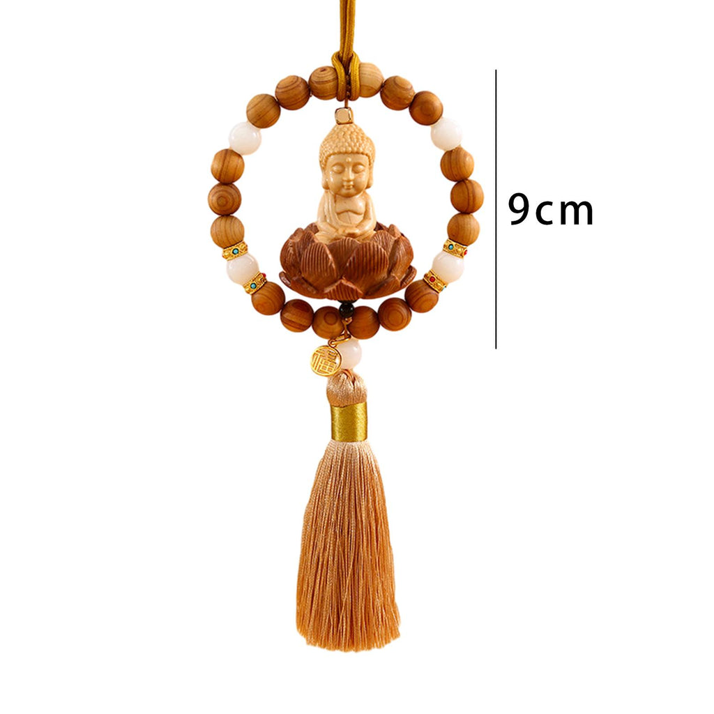 Maxbell Buddha Statue Car Rearview Mirror Pendant Wood Tassel Car Hanging Decoration Yellow