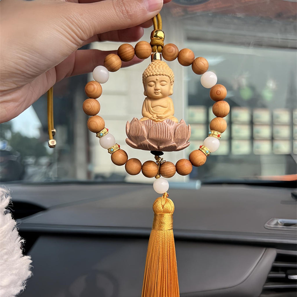 【Auto Interior Dangle】: Delicate Buddha statue car rearview mirror pendant, decorated with lotus beads, gourd, beautiful.