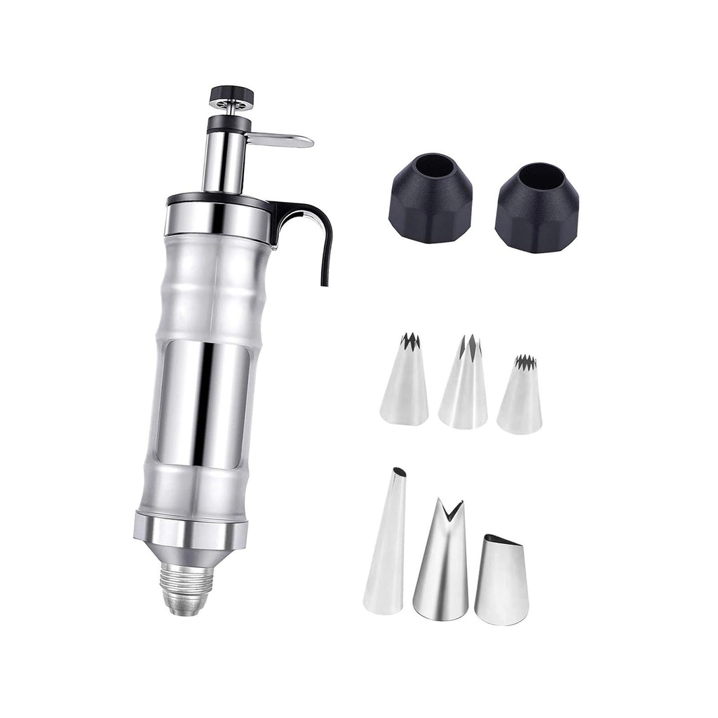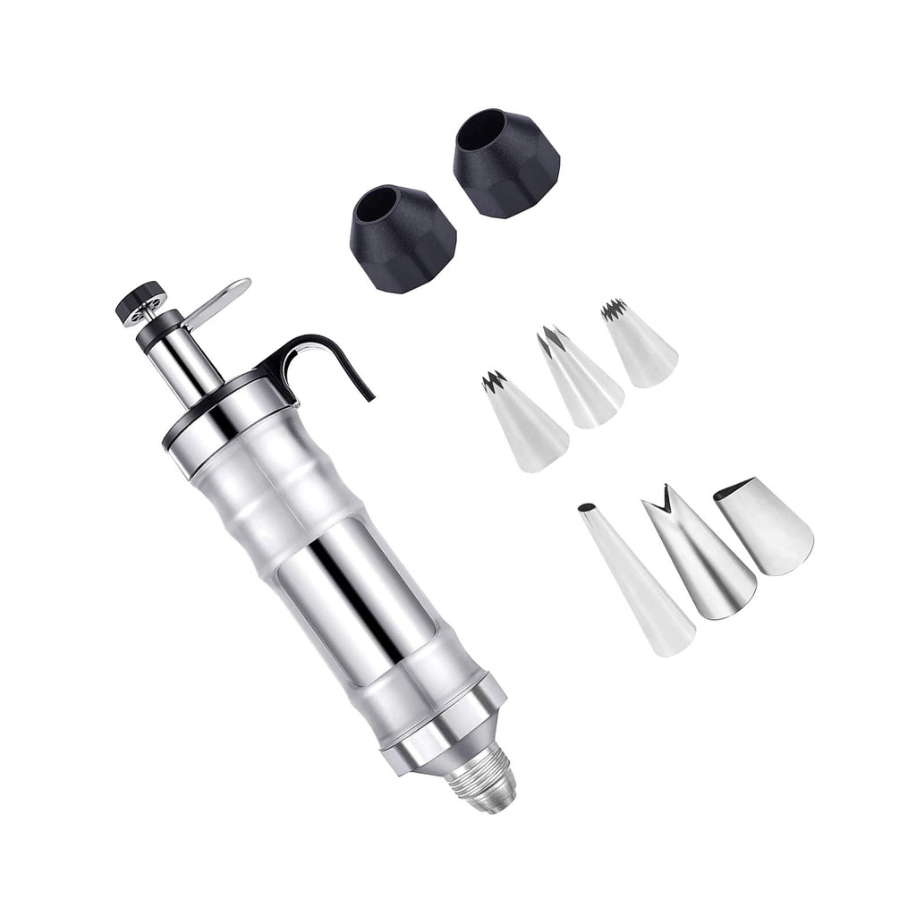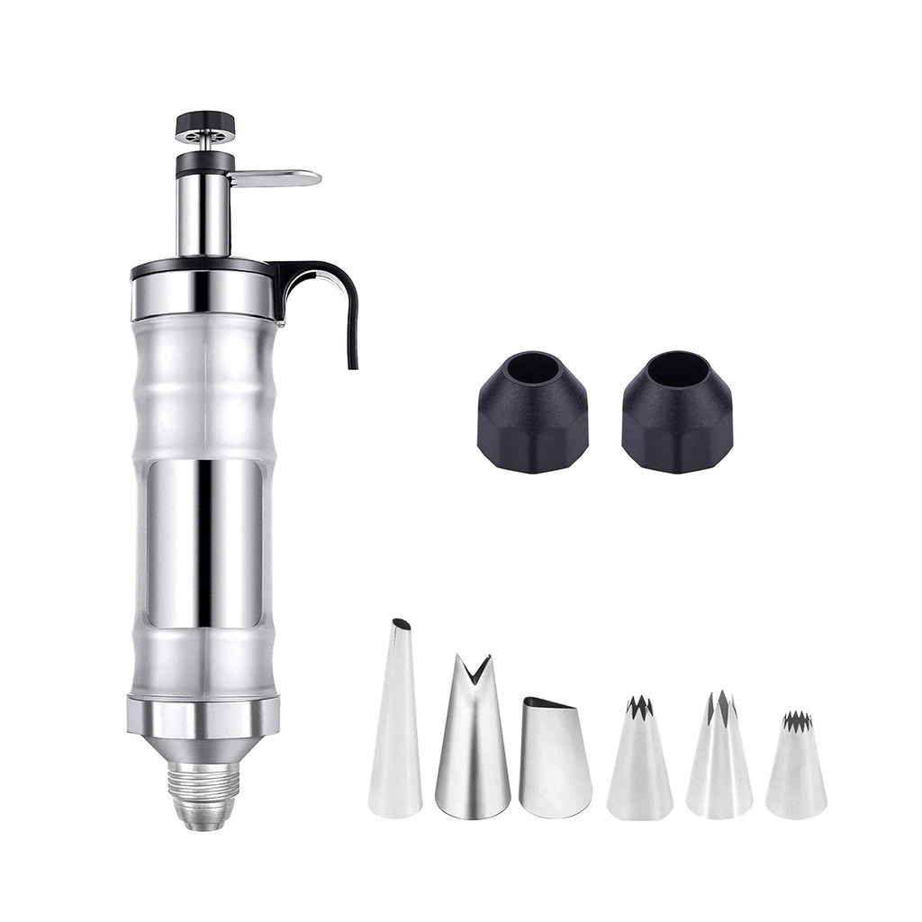 【Package】You will get 1 icing decoration press, 6 piping tips, and 2 piping tip couplers. Can meet your cupcakes, cakes, pastries and cookie decoration needs.