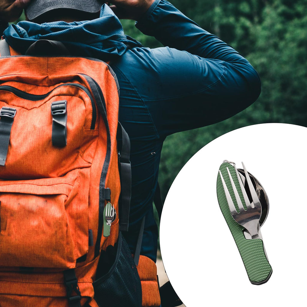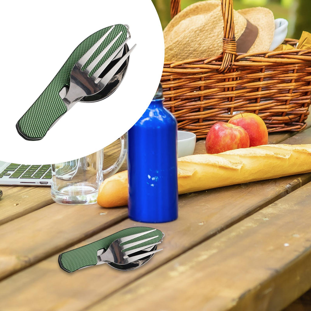 【 Camping Cutlery Set】: This outdoor dining tool features a fork, spoon, knife, and bottle opener set. Folding design, simple and convenient. It's great for storing in your backpack or pocket.