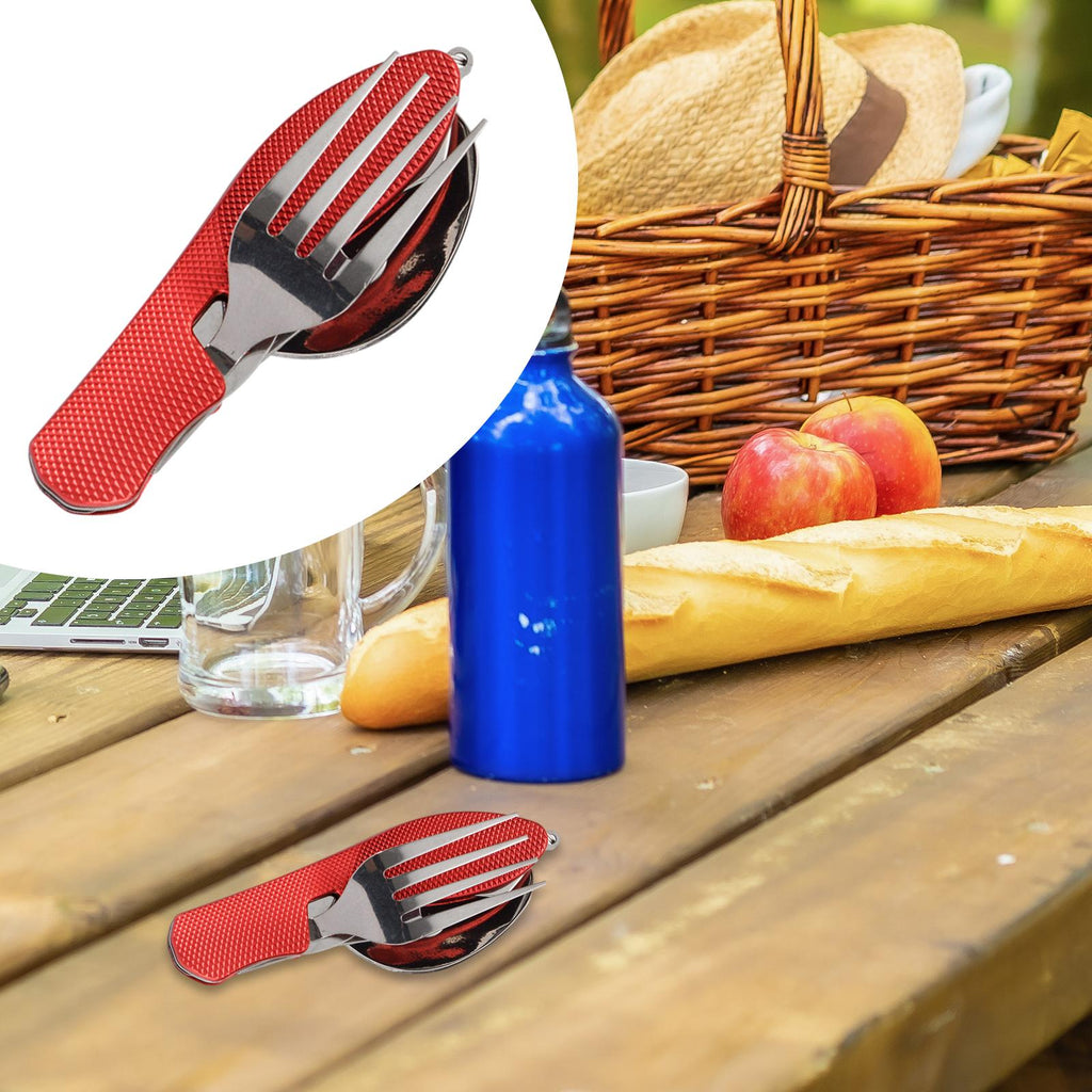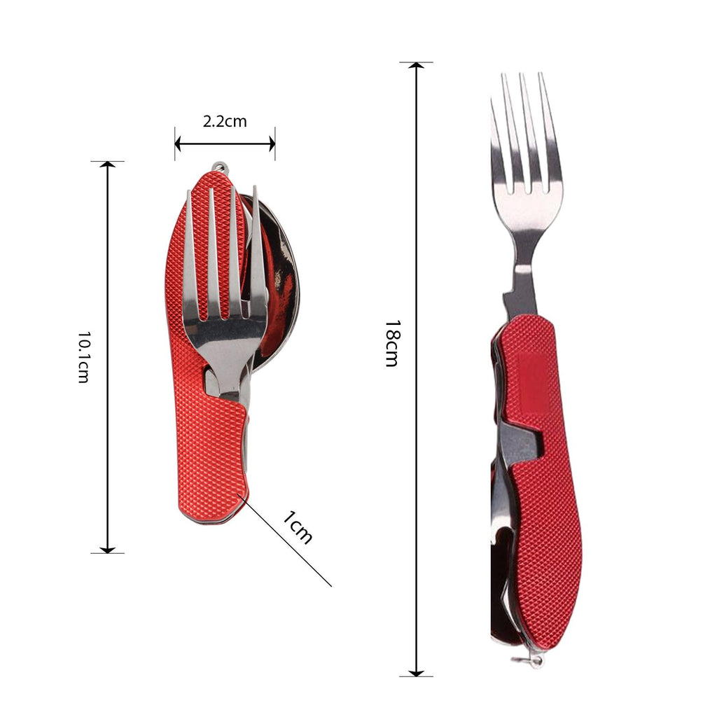 【 Camping Cutlery Set】: This outdoor dining tool features a fork, spoon, knife, and bottle opener set. Folding design, simple and convenient. It's great for storing in your backpack or pocket.