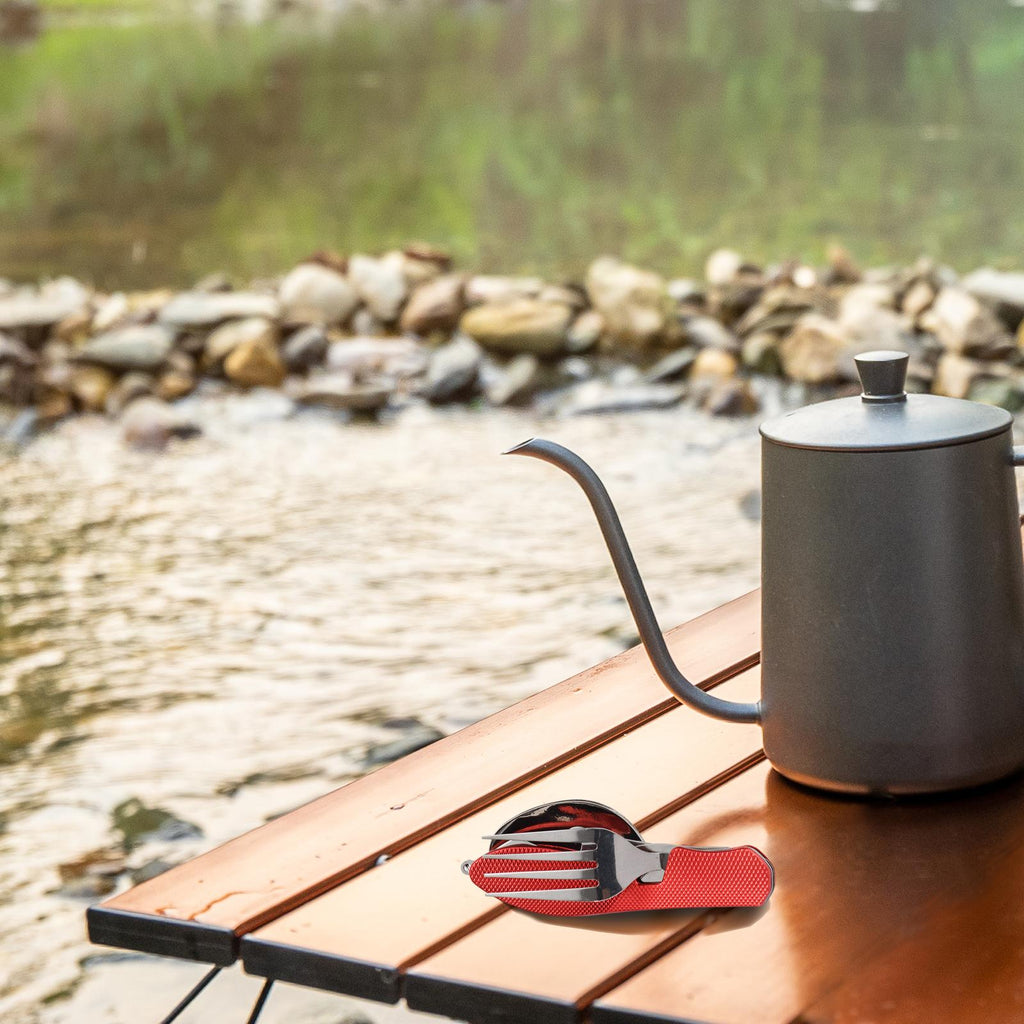 【Detachable Design】: The portable pocket camping utensil set can be disassembled and used separately. After you use it, it can be folded and installed to the multifunction tool.